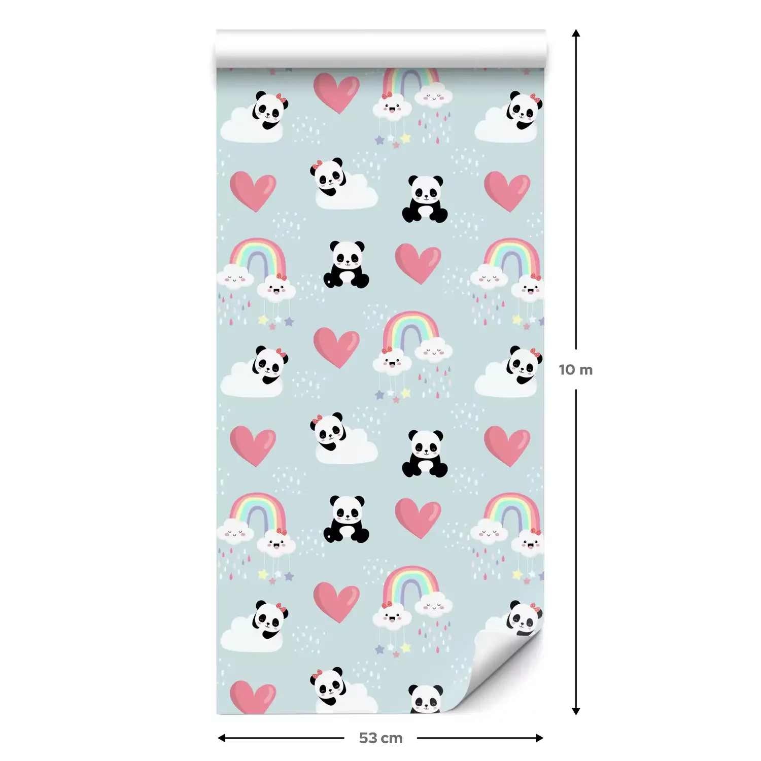 Eine Standard-Tapetenrolle hat die Maße 0,53 m x 10 m und deckt eine Wandfläche von etwa 5 m² ab.