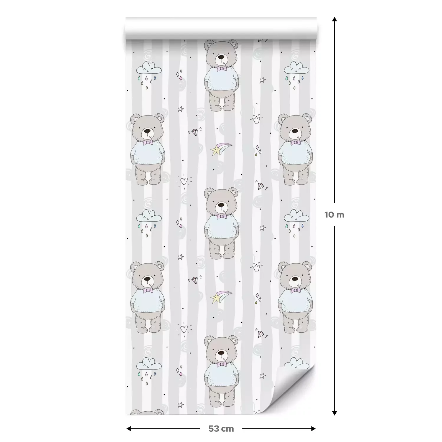 Eine Standard-Tapetenrolle hat die Maße 0,53 m x 10 m und deckt eine Wandfläche von etwa 5 m² ab.