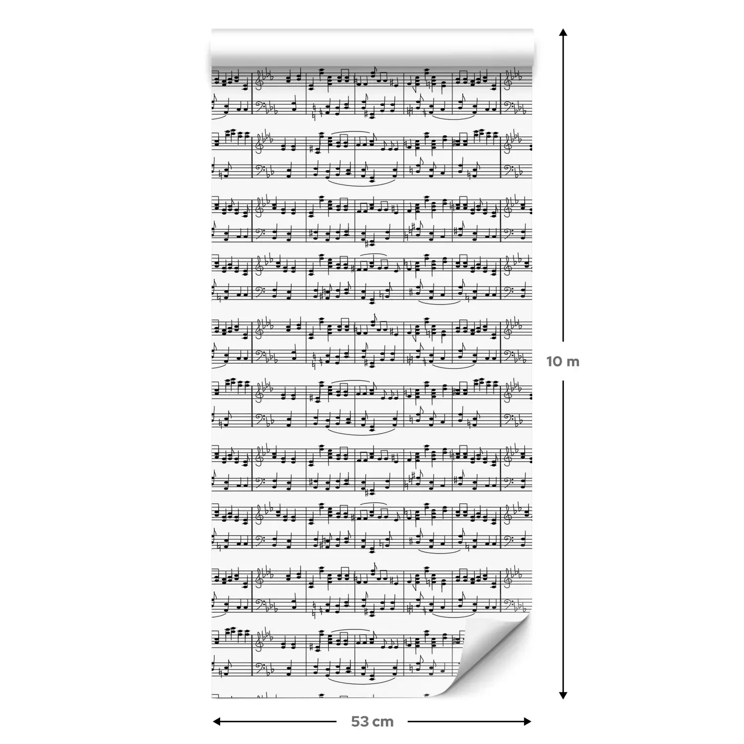 Eine Standard-Tapetenrolle hat die Maße 0,53 m x 10 m und deckt eine Wandfläche von etwa 5 m² ab.