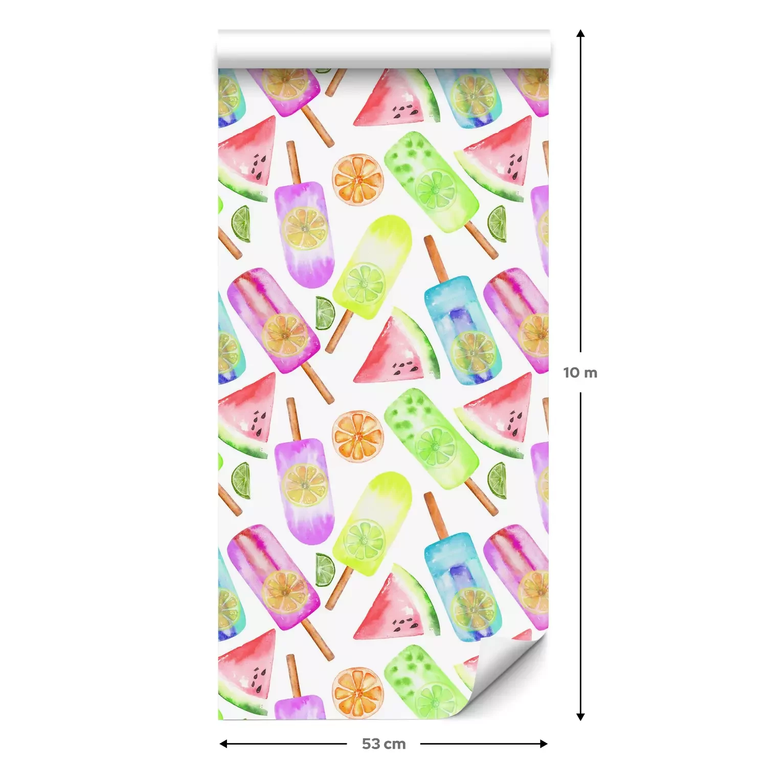 Eine Standard-Tapetenrolle hat die Maße 0,53 m x 10 m und deckt eine Wandfläche von etwa 5 m² ab.