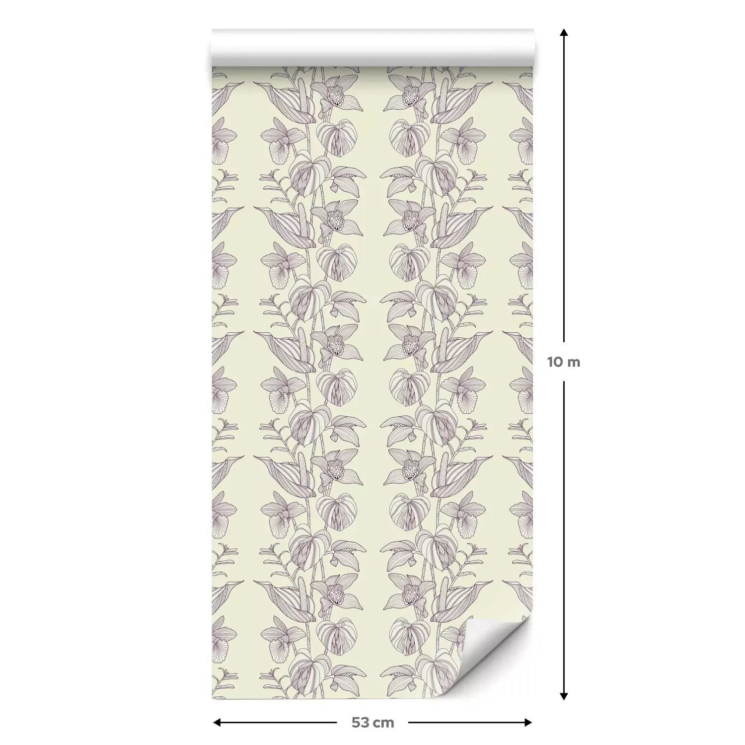 Eine Standard-Tapetenrolle hat die Maße 0,53 m x 10 m und deckt eine Wandfläche von etwa 5 m² ab.