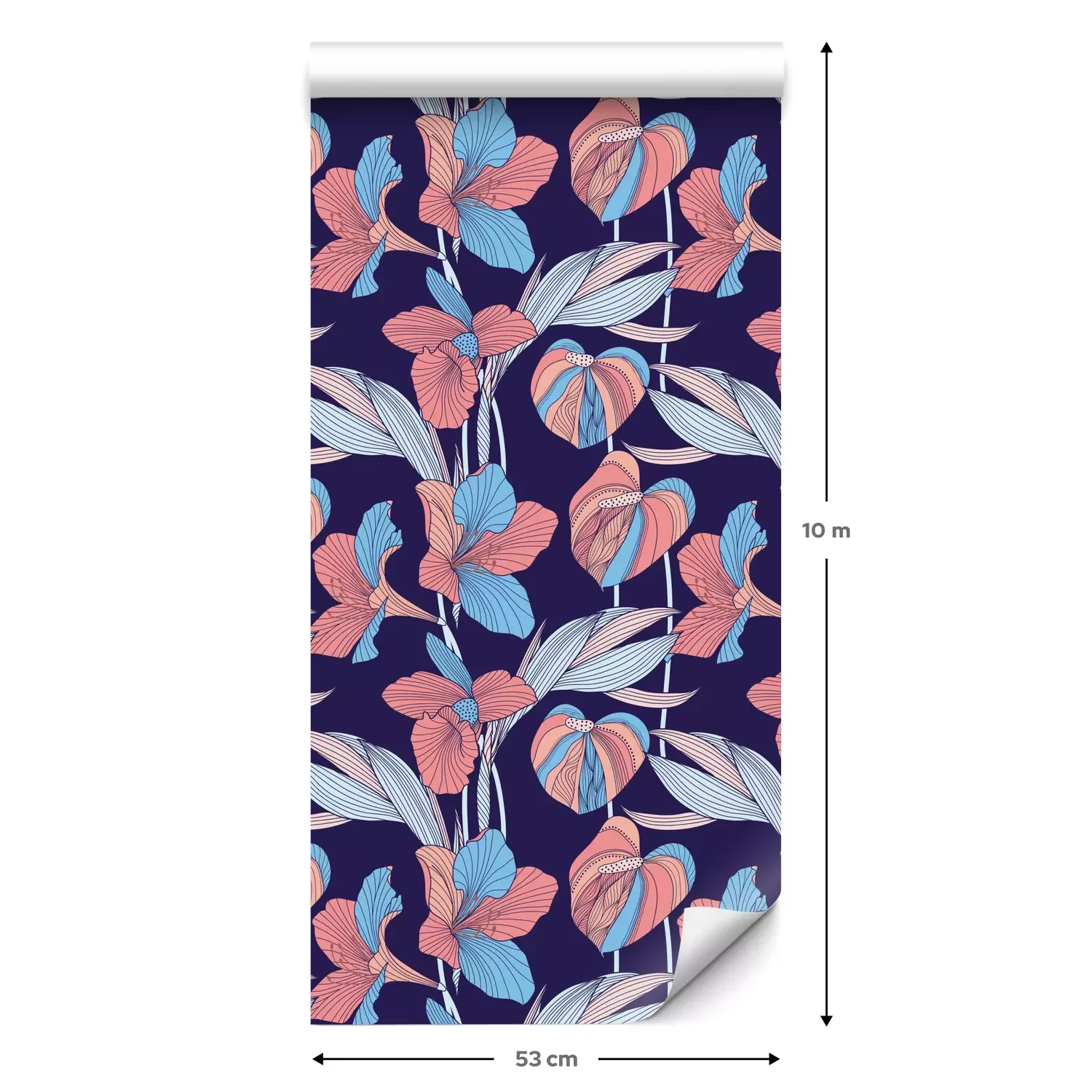 Eine Standard-Tapetenrolle hat die Maße 0,53 m x 10 m und deckt eine Wandfläche von etwa 5 m² ab.