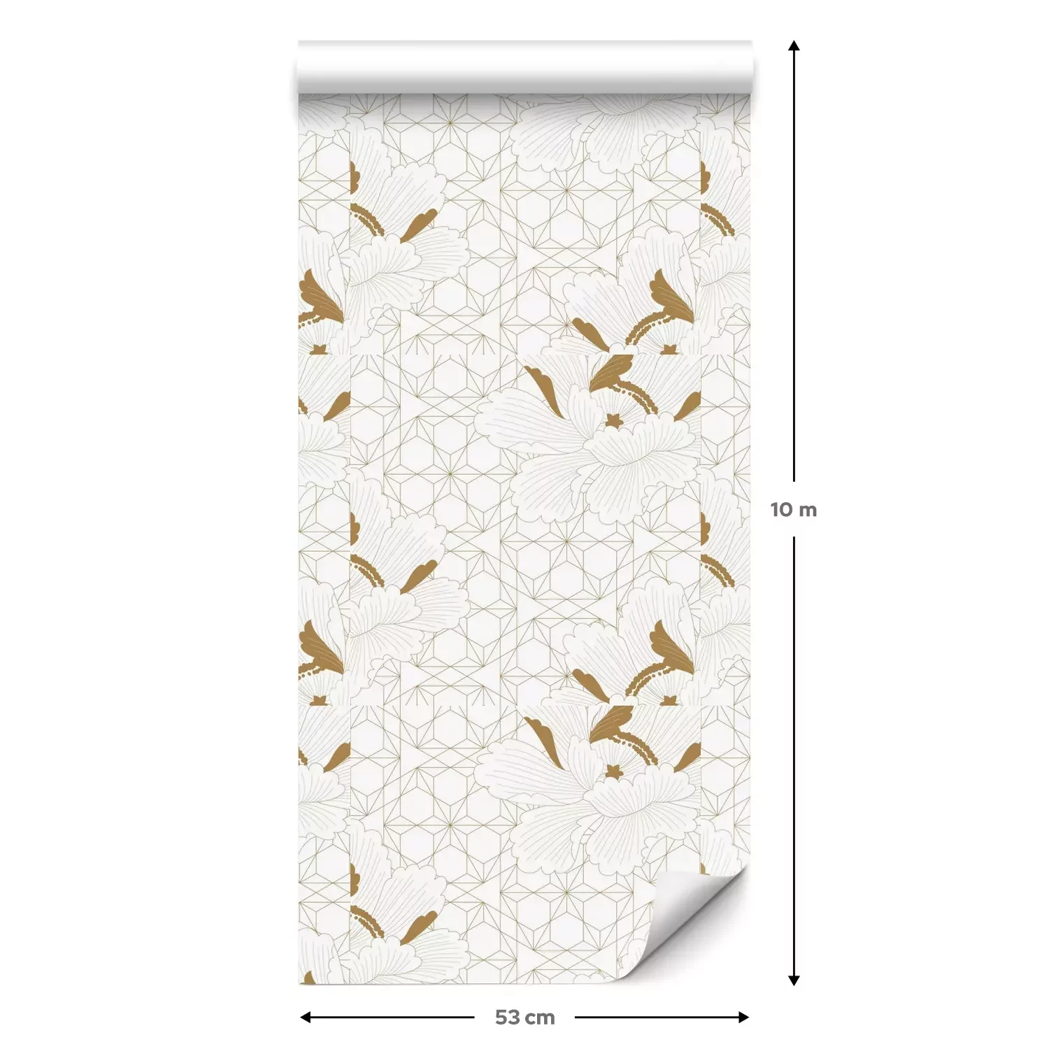 Eine Standard-Tapetenrolle hat die Maße 0,53 m x 10 m und deckt eine Wandfläche von etwa 5 m² ab.