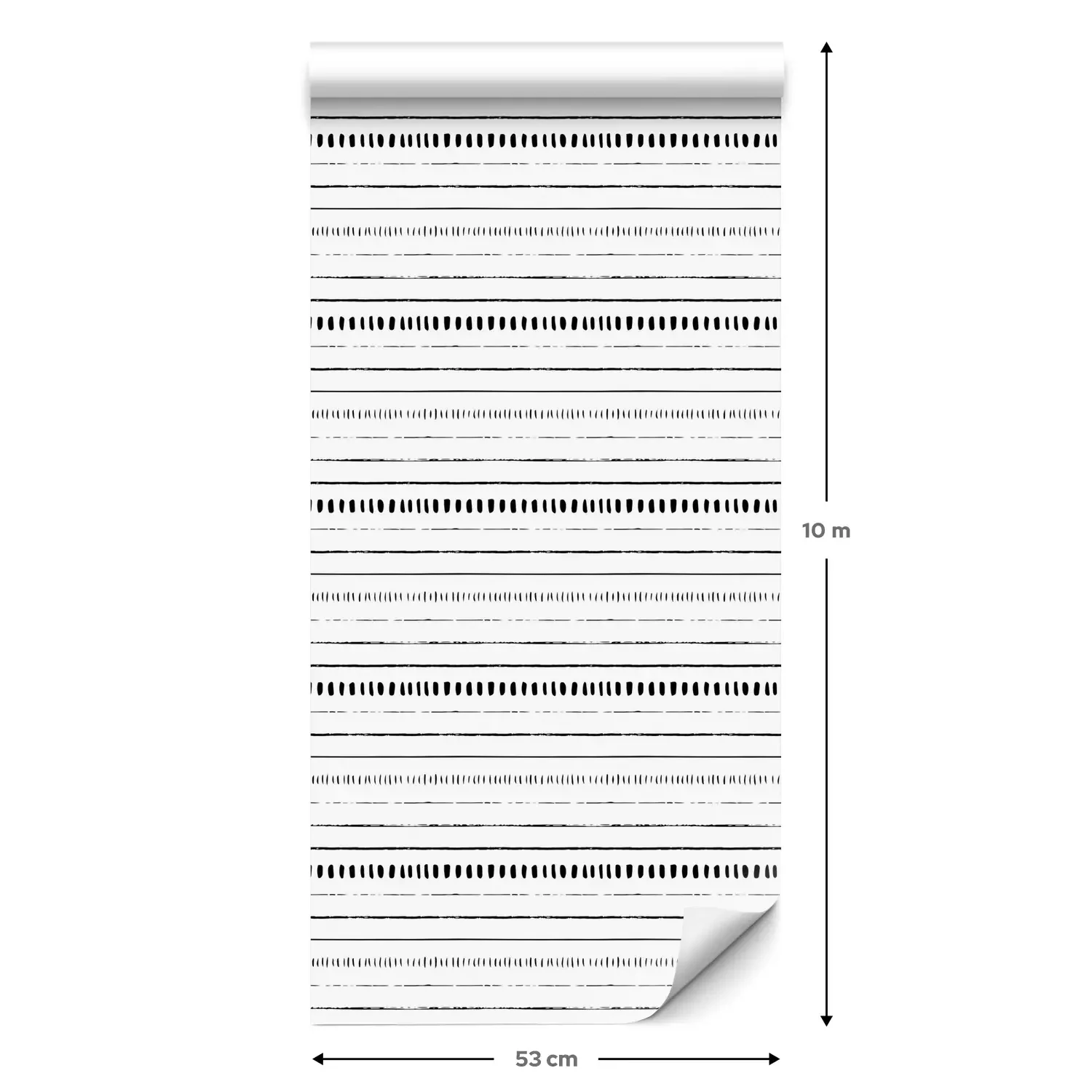 Eine Standard-Tapetenrolle hat die Maße 0,53 m x 10 m und deckt eine Wandfläche von etwa 5 m² ab.