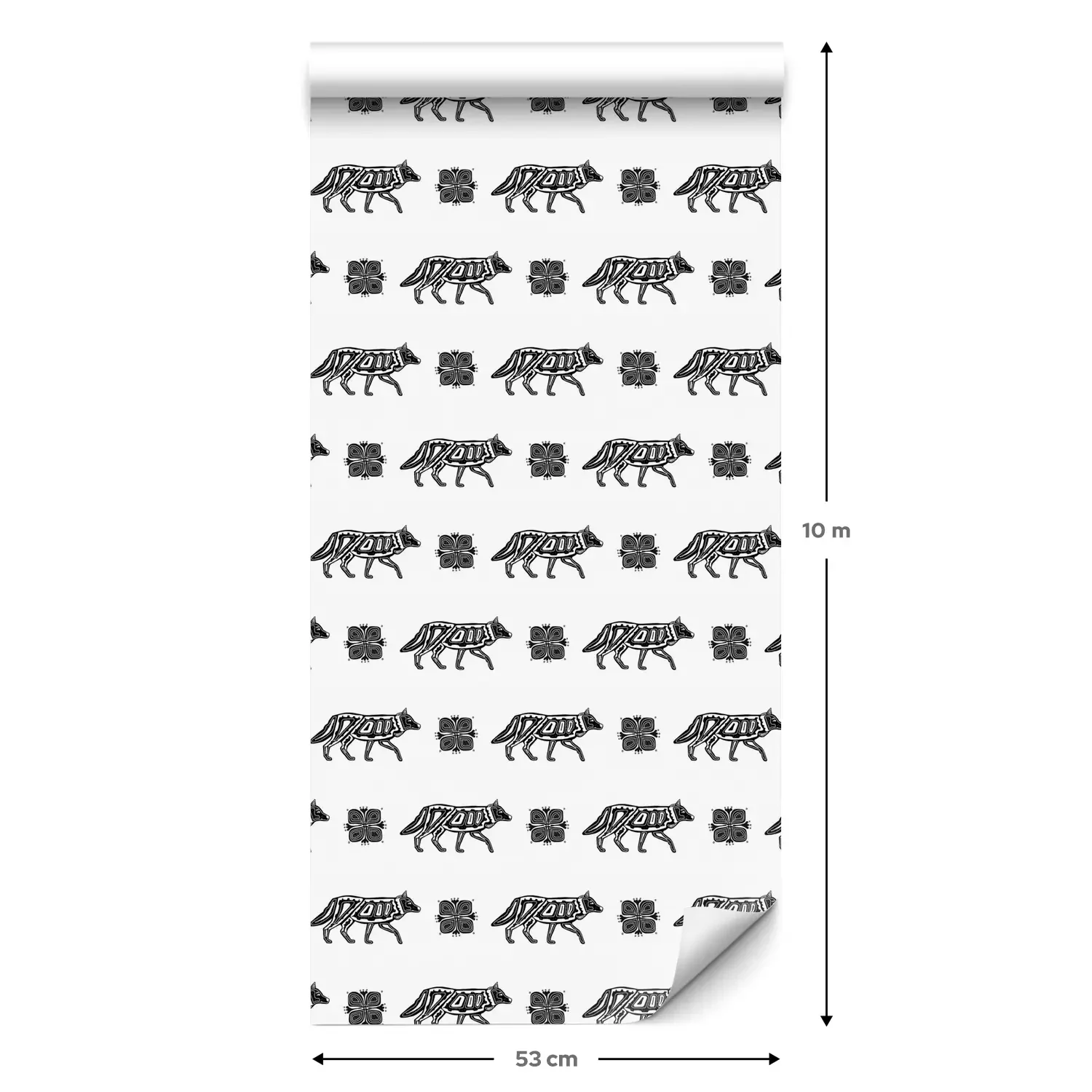 Eine Standard-Tapetenrolle hat die Maße 0,53 m x 10 m und deckt eine Wandfläche von etwa 5 m² ab.