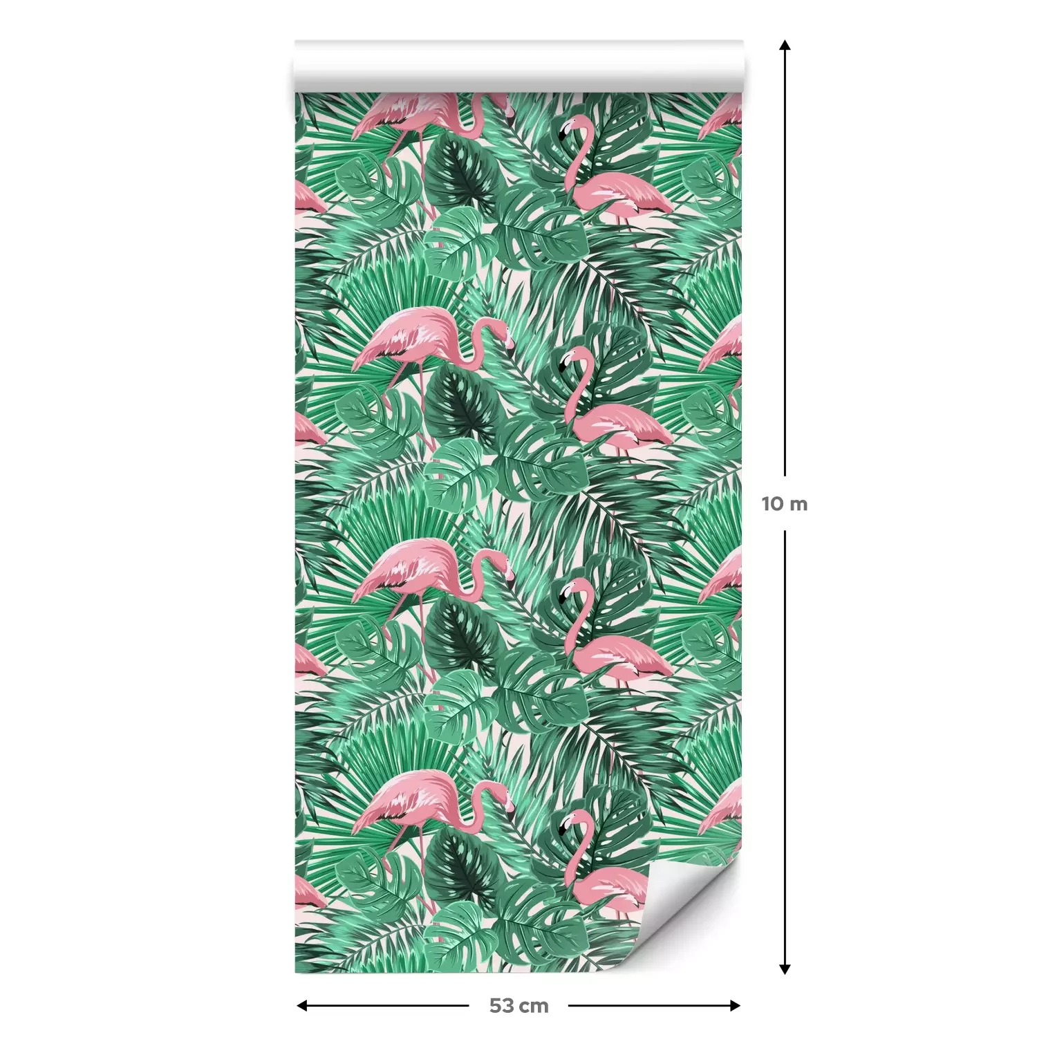 Eine Standard-Tapetenrolle hat die Maße 0,53 m x 10 m und deckt eine Wandfläche von etwa 5 m² ab.