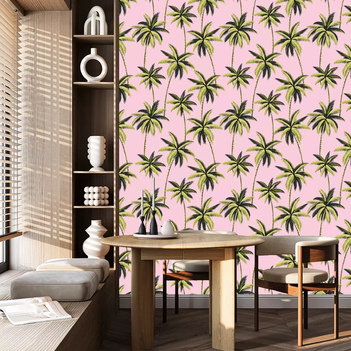 Palmenblätter auf rosa HintergrundFototapete