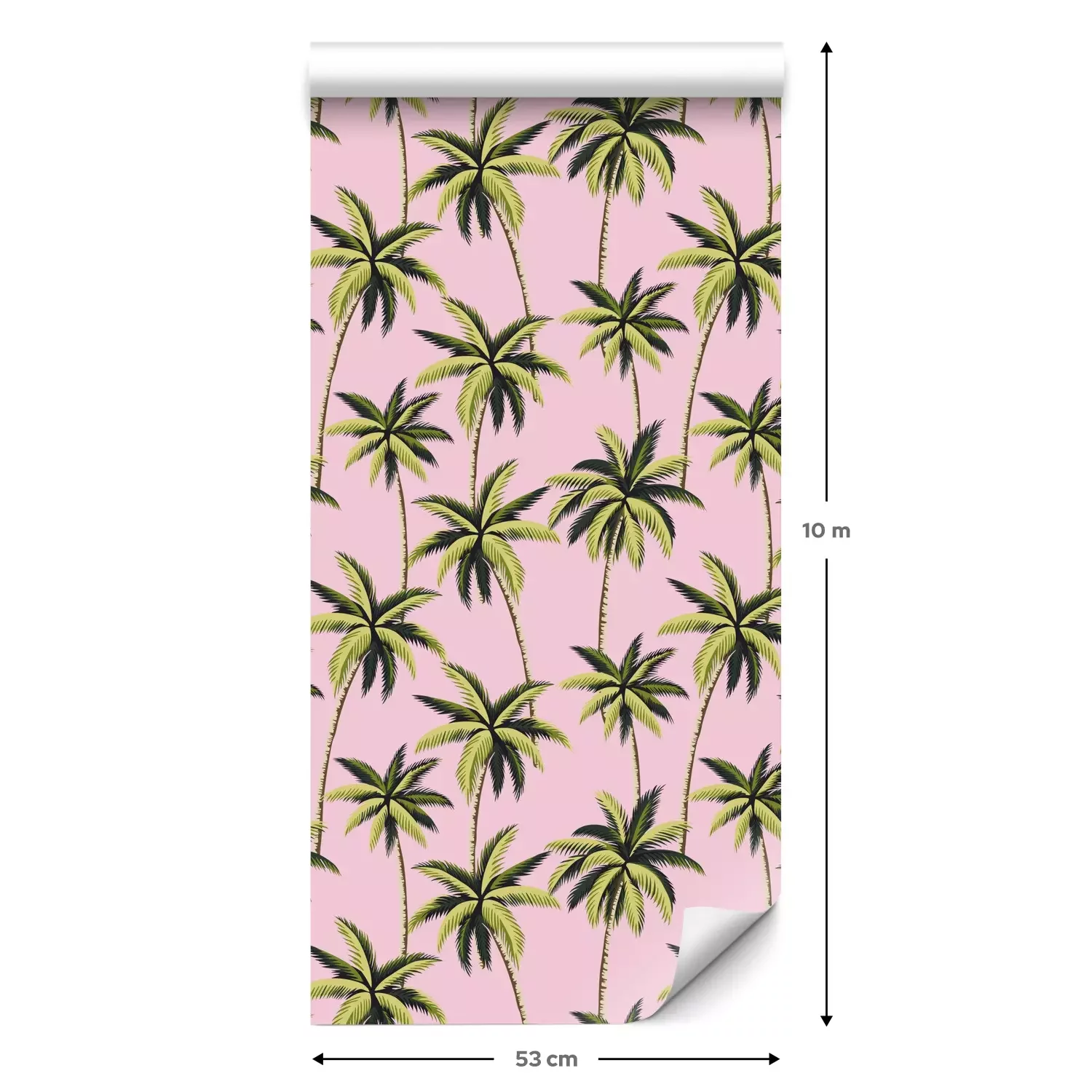 Eine Standard-Tapetenrolle hat die Maße 0,53 m x 10 m und deckt eine Wandfläche von etwa 5 m² ab.