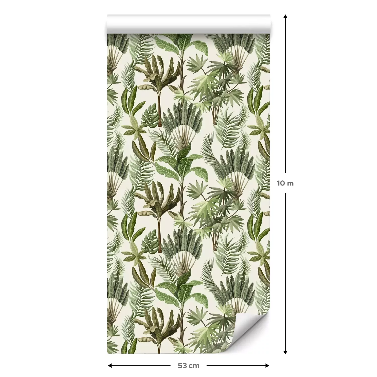 Eine Standard-Tapetenrolle hat die Maße 0,53 m x 10 m und deckt eine Wandfläche von etwa 5 m² ab.