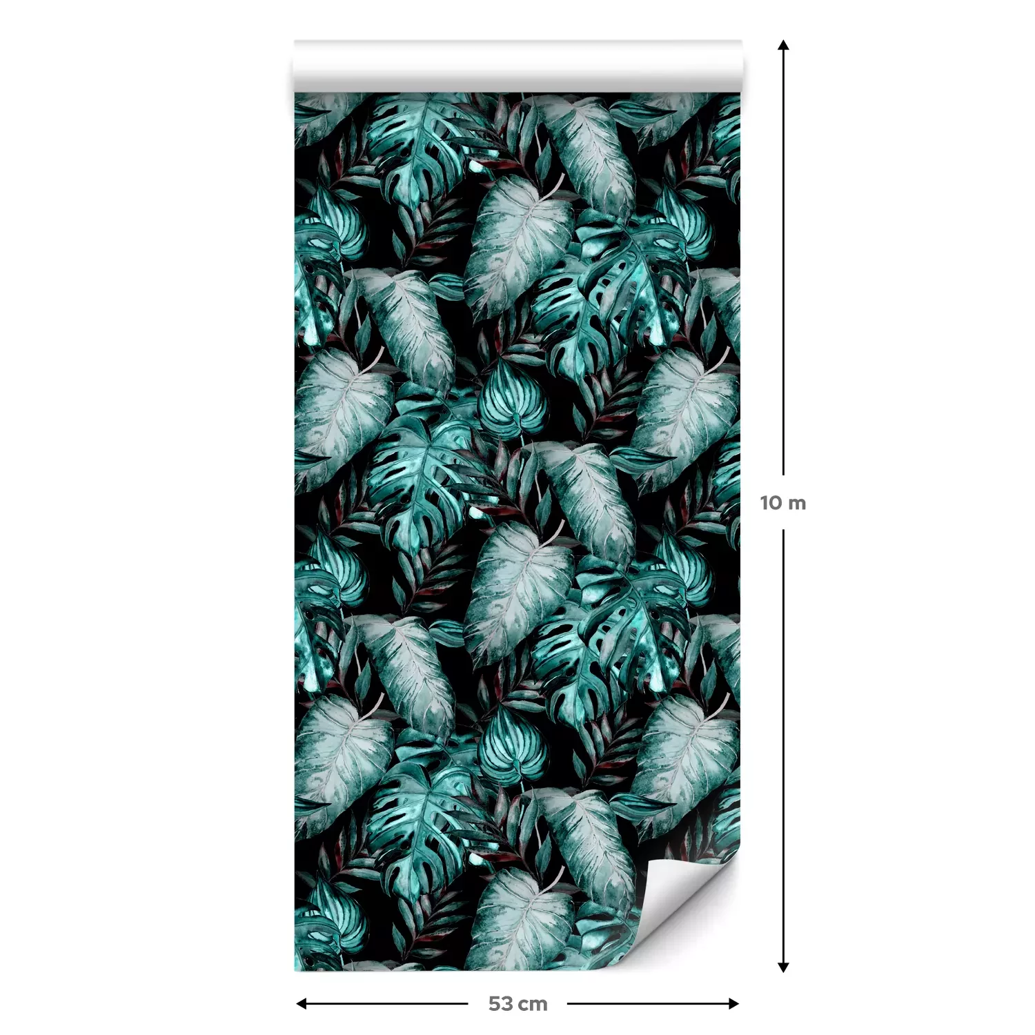 Eine Standard-Tapetenrolle hat die Maße 0,53 m x 10 m und deckt eine Wandfläche von etwa 5 m² ab.