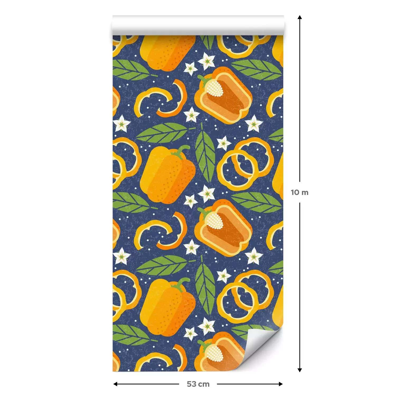 Eine Standard-Tapetenrolle hat die Maße 0,53 m x 10 m und deckt eine Wandfläche von etwa 5 m² ab.