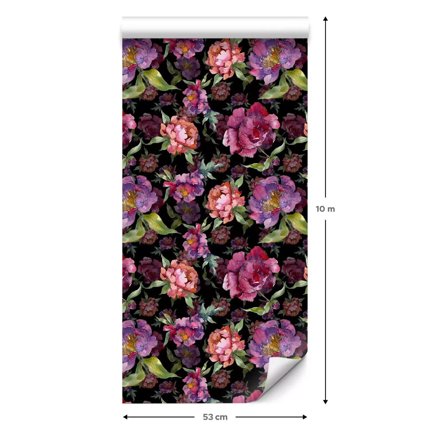 Eine Standard-Tapetenrolle hat die Maße 0,53 m x 10 m und deckt eine Wandfläche von etwa 5 m² ab.