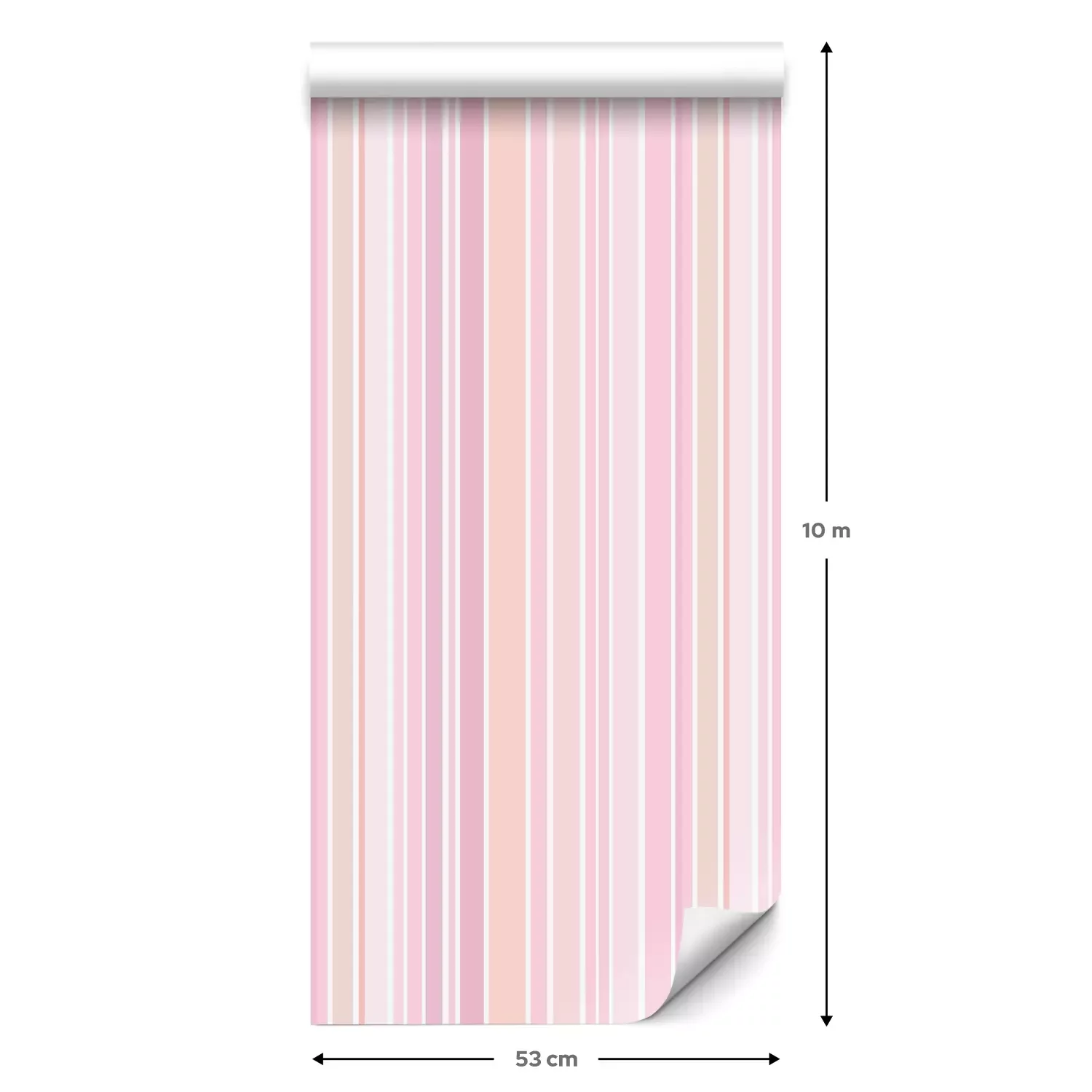 Eine Standard-Tapetenrolle hat die Maße 0,53 m x 10 m und deckt eine Wandfläche von etwa 5 m² ab.