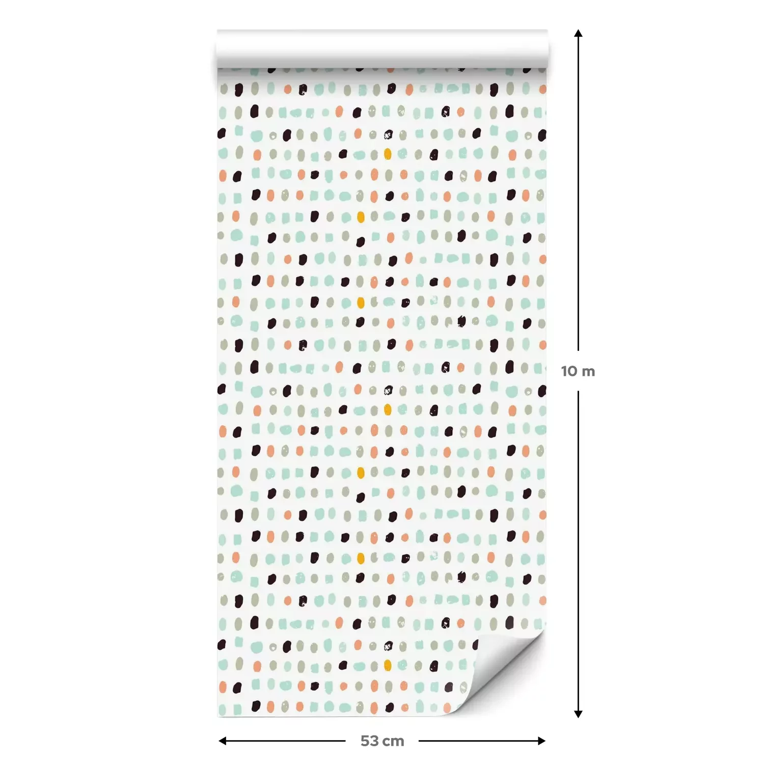 Eine Standard-Tapetenrolle hat die Maße 0,53 m x 10 m und deckt eine Wandfläche von etwa 5 m² ab.