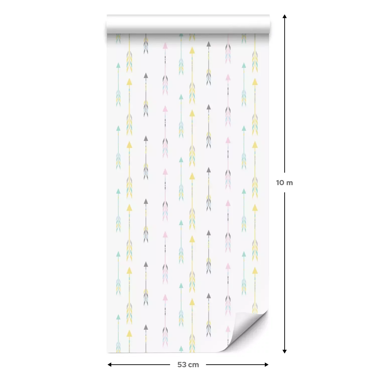 Eine Standard-Tapetenrolle hat die Maße 0,53 m x 10 m und deckt eine Wandfläche von etwa 5 m² ab.