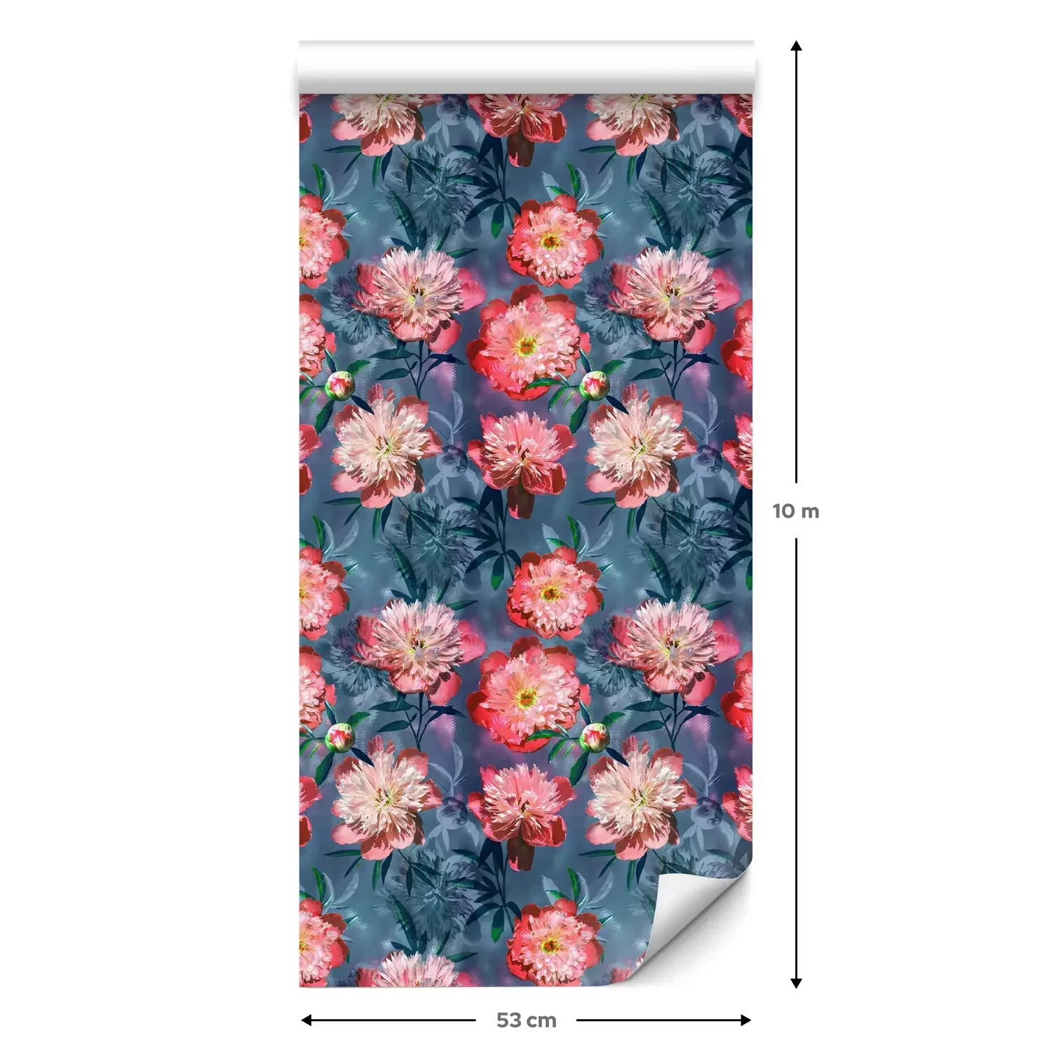 Eine Standard-Tapetenrolle hat die Maße 0,53 m x 10 m und deckt eine Wandfläche von etwa 5 m² ab.