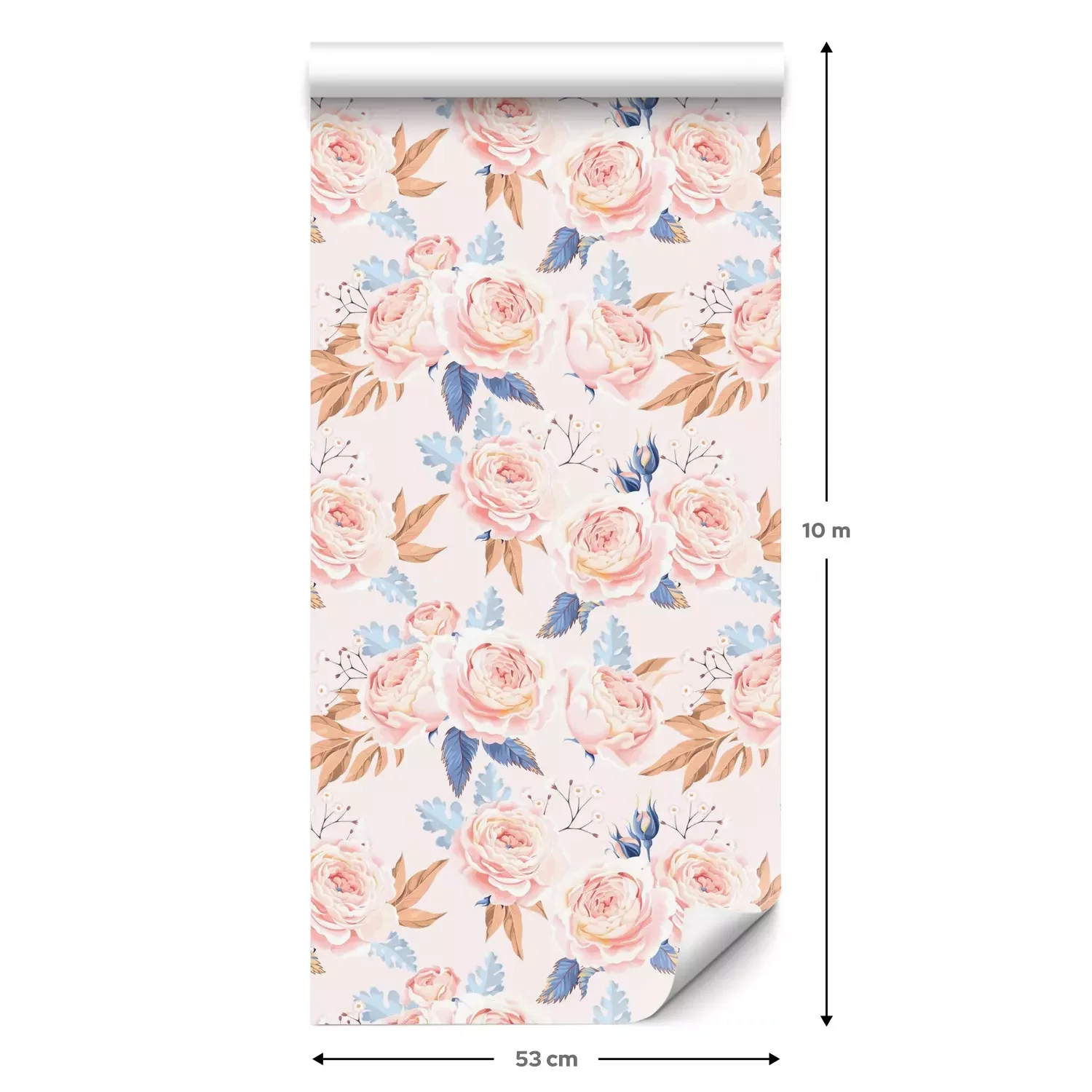 Eine Standard-Tapetenrolle hat die Maße 0,53 m x 10 m und deckt eine Wandfläche von etwa 5 m² ab.