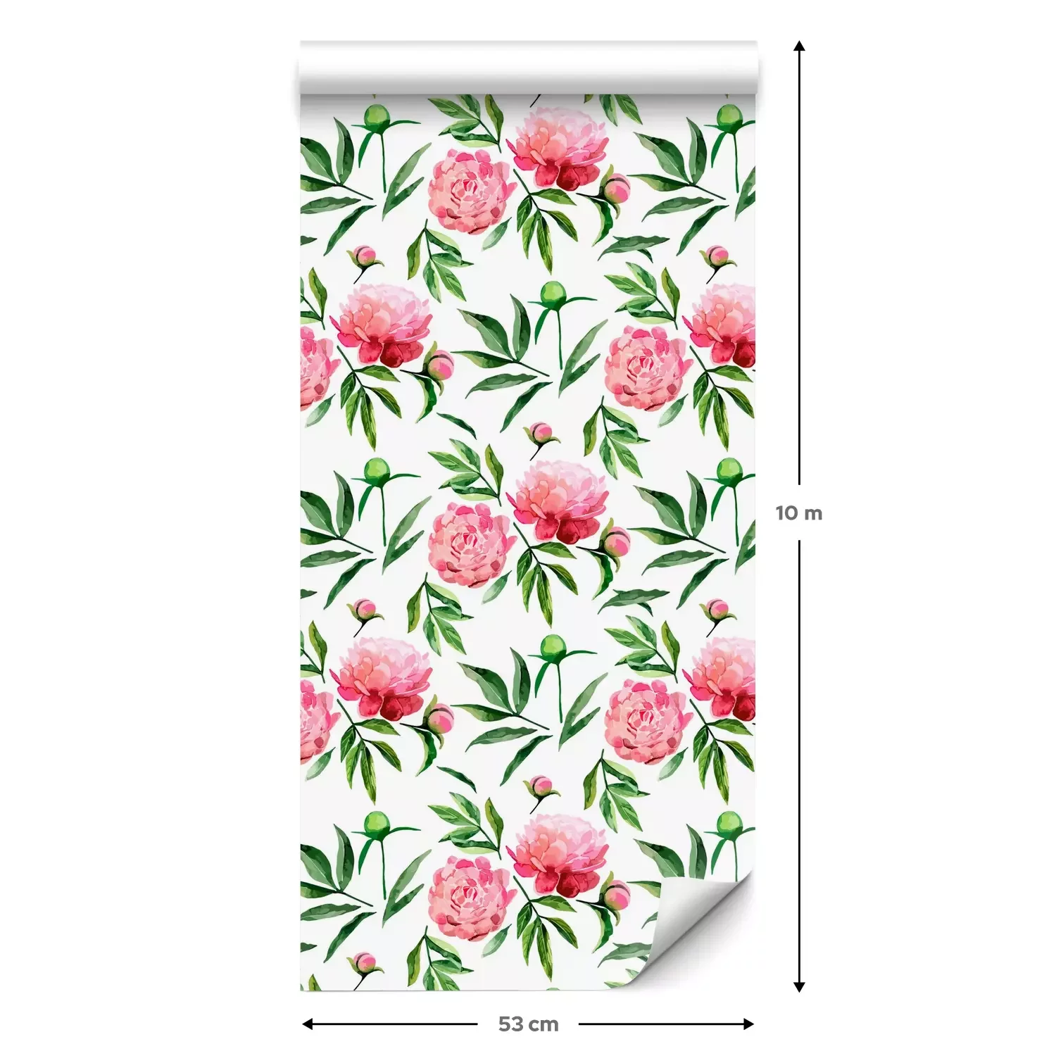 Eine Standard-Tapetenrolle hat die Maße 0,53 m x 10 m und deckt eine Wandfläche von etwa 5 m² ab.