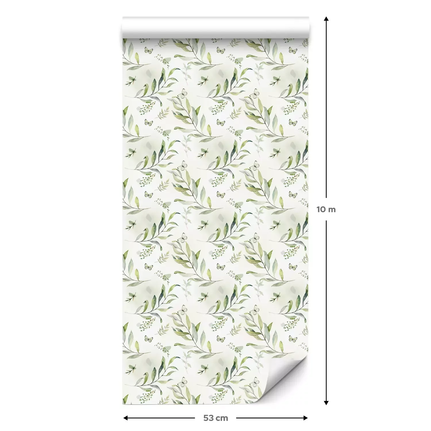 Eine Standard-Tapetenrolle hat die Maße 0,53 m x 10 m und deckt eine Wandfläche von etwa 5 m² ab.