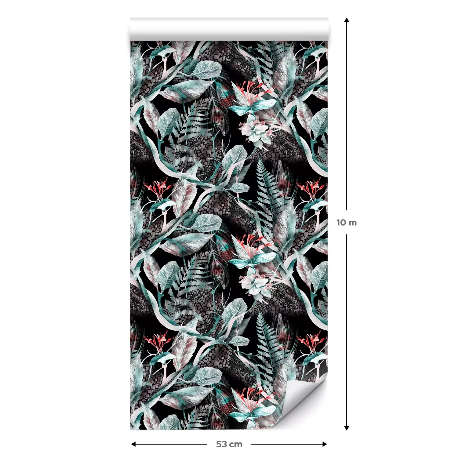 Eine Standard-Tapetenrolle hat die Maße 0,53 m x 10 m und deckt eine Wandfläche von etwa 5 m² ab.