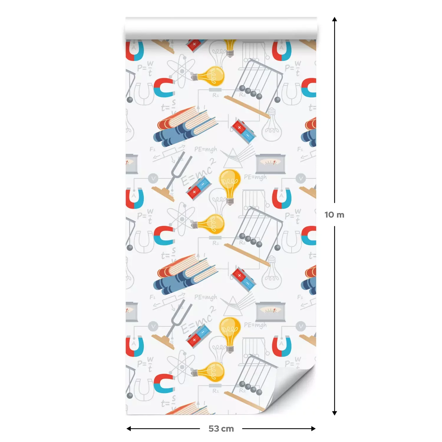 Eine Standard-Tapetenrolle hat die Maße 0,53 m x 10 m und deckt eine Wandfläche von etwa 5 m² ab.