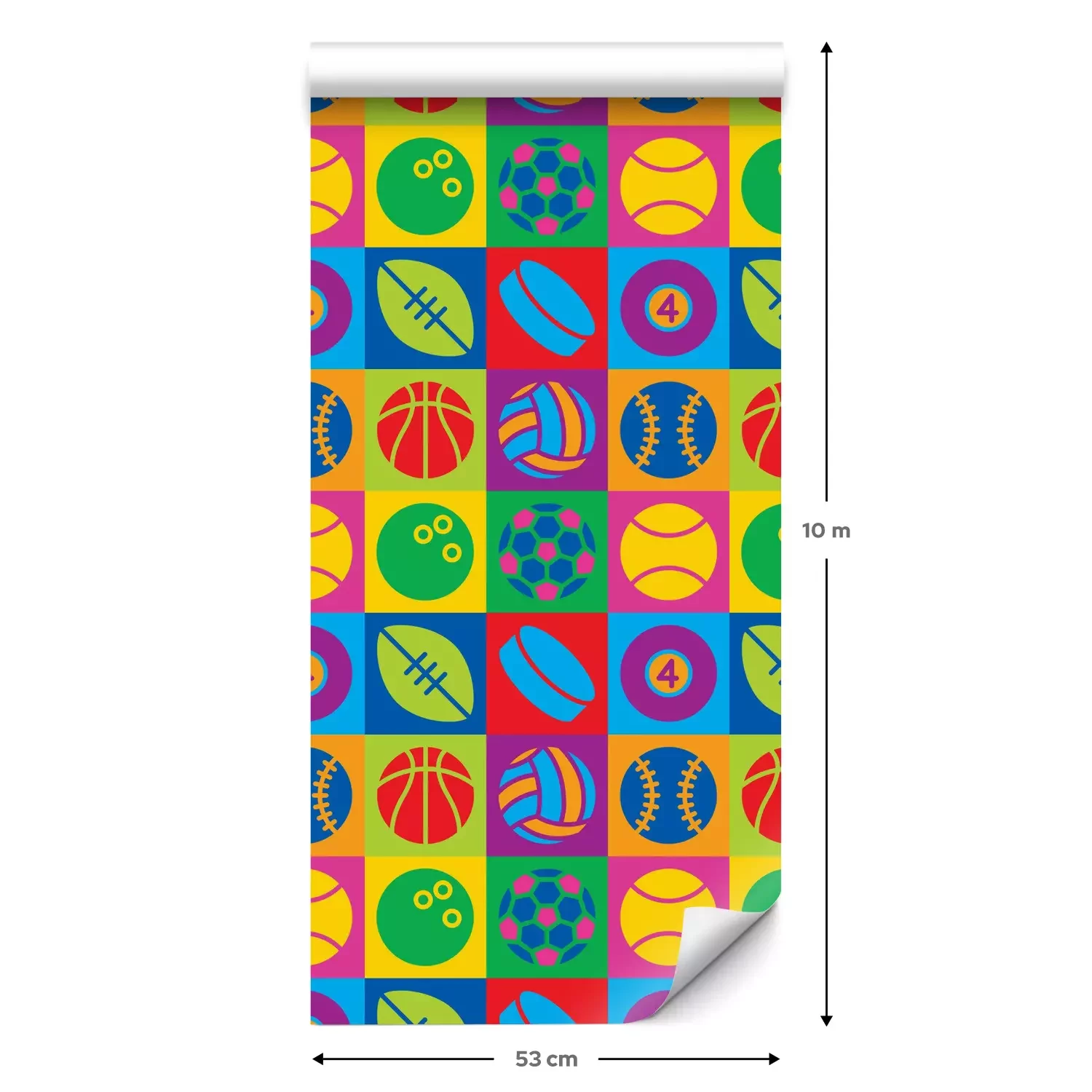 Eine Standard-Tapetenrolle hat die Maße 0,53 m x 10 m und deckt eine Wandfläche von etwa 5 m² ab.