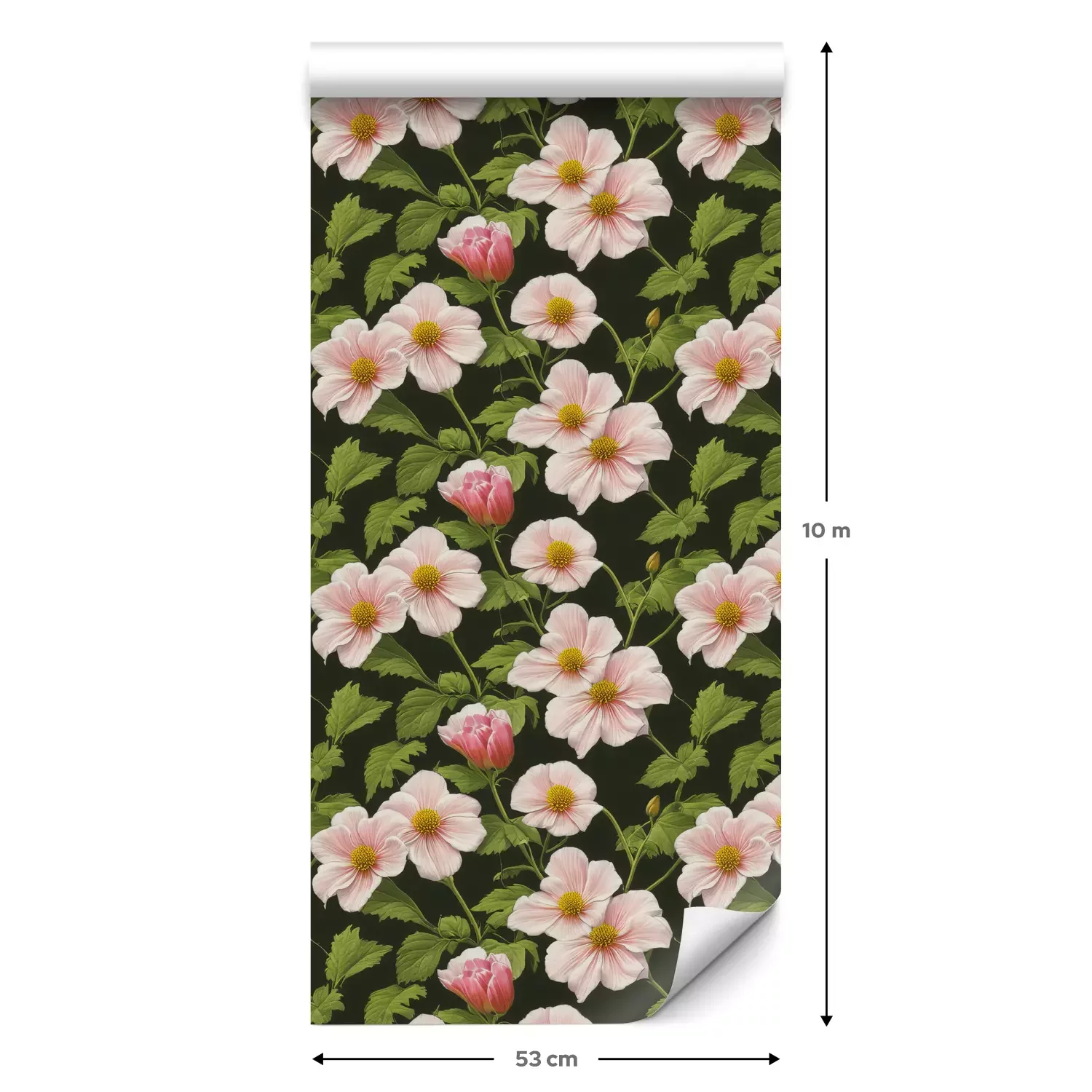 Eine Standard-Tapetenrolle hat die Maße 0,53 m x 10 m und deckt eine Wandfläche von etwa 5 m² ab.