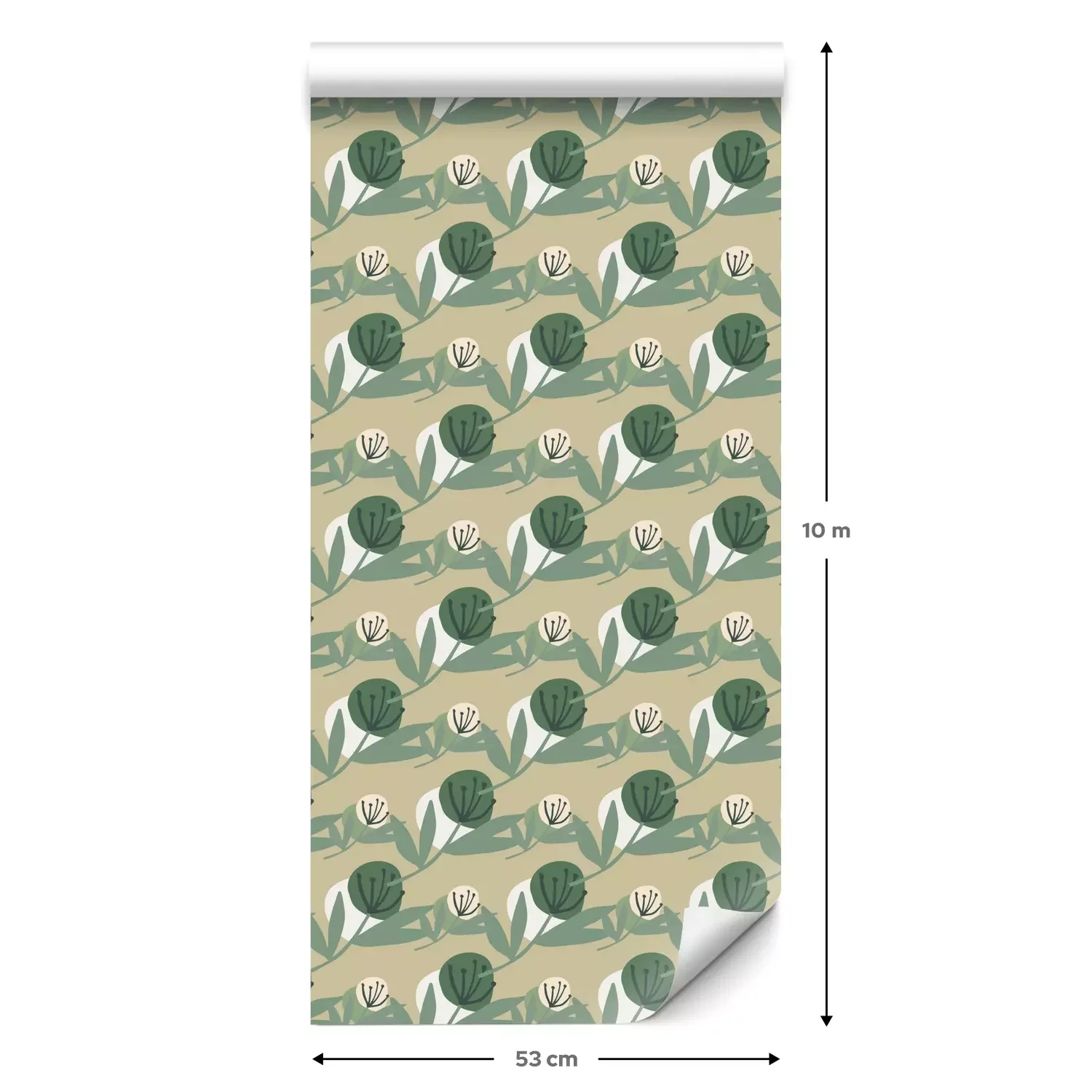 Eine Standard-Tapetenrolle hat die Maße 0,53 m x 10 m und deckt eine Wandfläche von etwa 5 m² ab.