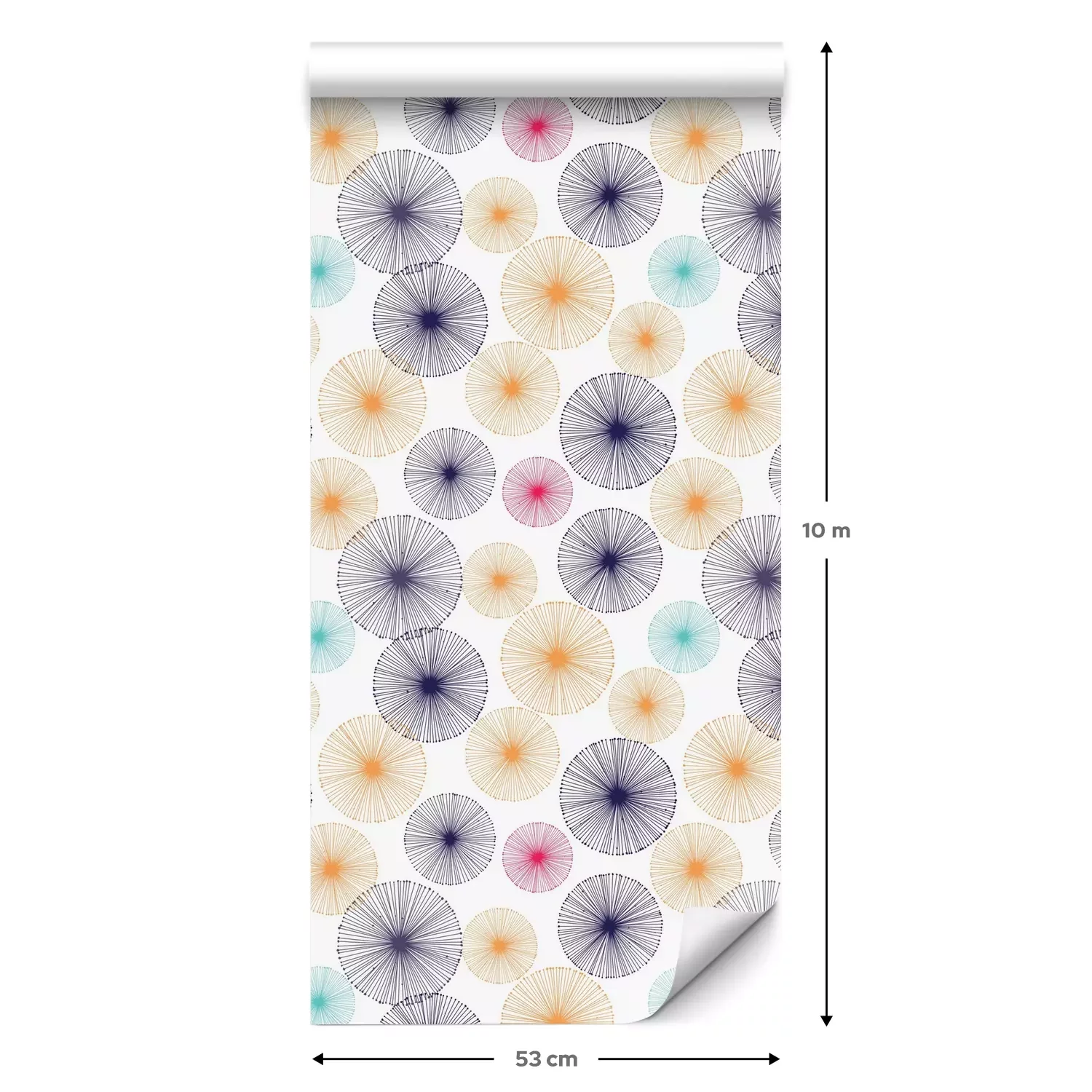 Eine Standard-Tapetenrolle hat die Maße 0,53 m x 10 m und deckt eine Wandfläche von etwa 5 m² ab.