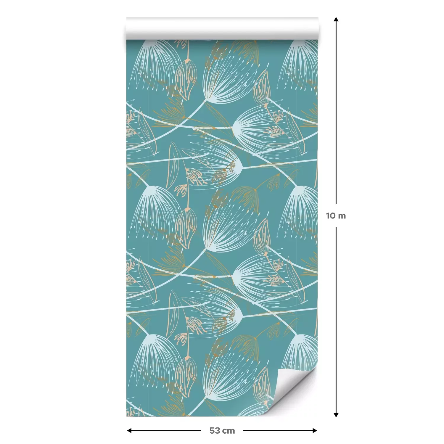 Eine Standard-Tapetenrolle hat die Maße 0,53 m x 10 m und deckt eine Wandfläche von etwa 5 m² ab.