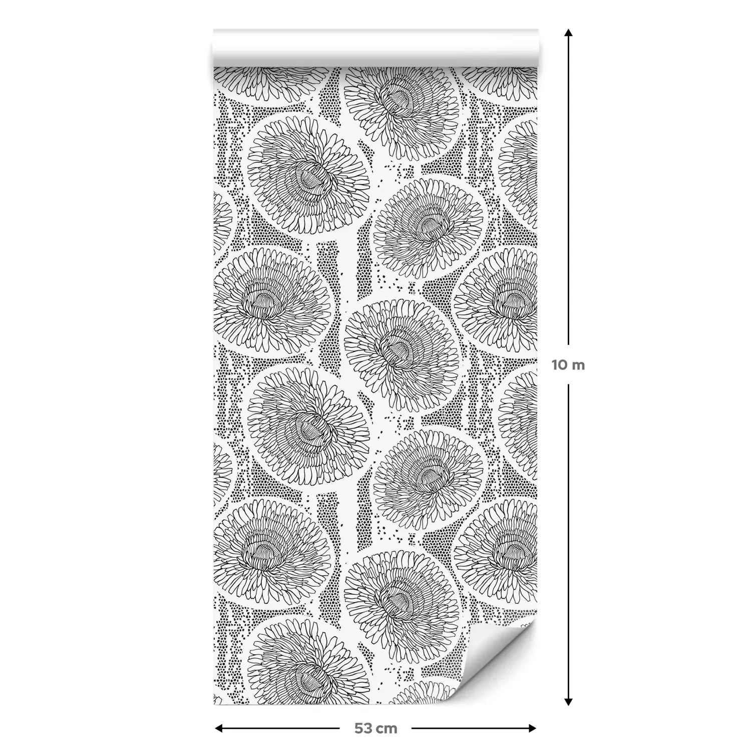 Eine Standard-Tapetenrolle hat die Maße 0,53 m x 10 m und deckt eine Wandfläche von etwa 5 m² ab.