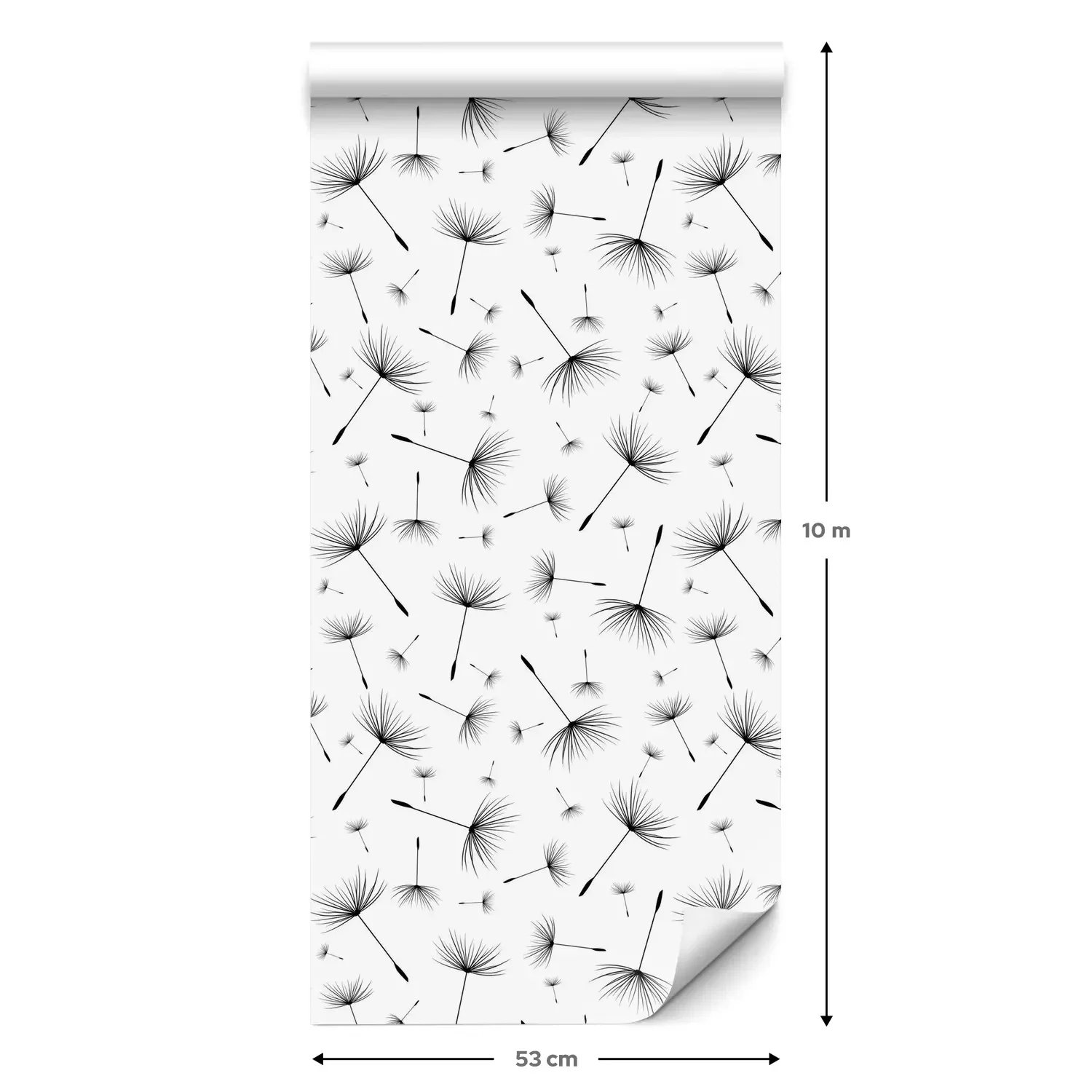 Eine Standard-Tapetenrolle hat die Maße 0,53 m x 10 m und deckt eine Wandfläche von etwa 5 m² ab.
