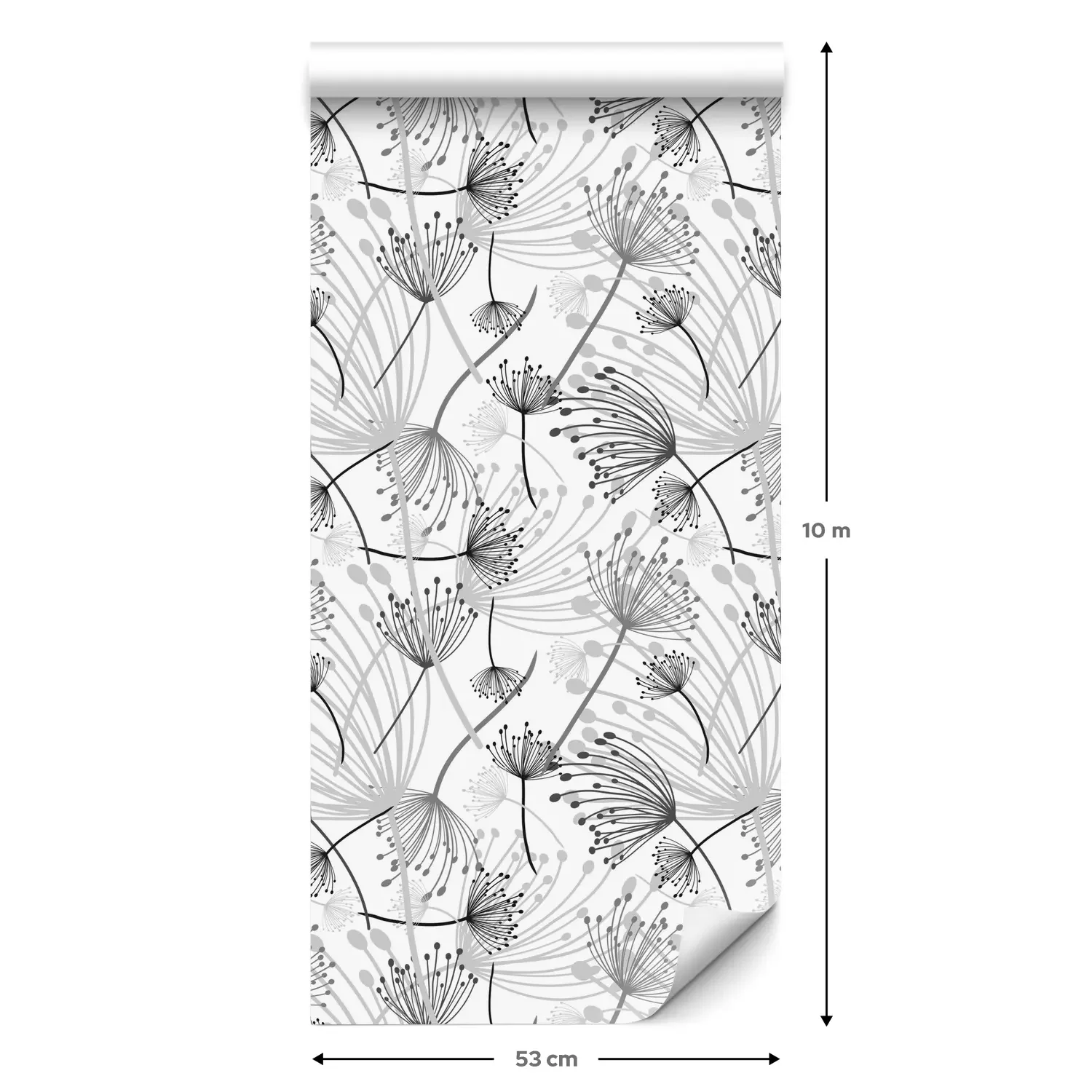 Eine Standard-Tapetenrolle hat die Maße 0,53 m x 10 m und deckt eine Wandfläche von etwa 5 m² ab.