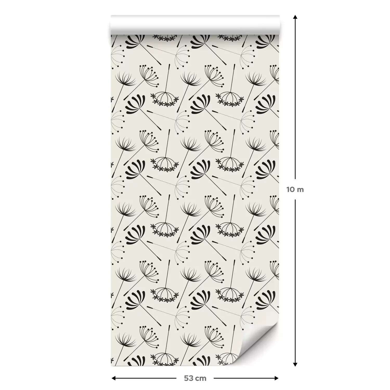 Eine Standard-Tapetenrolle hat die Maße 0,53 m x 10 m und deckt eine Wandfläche von etwa 5 m² ab.