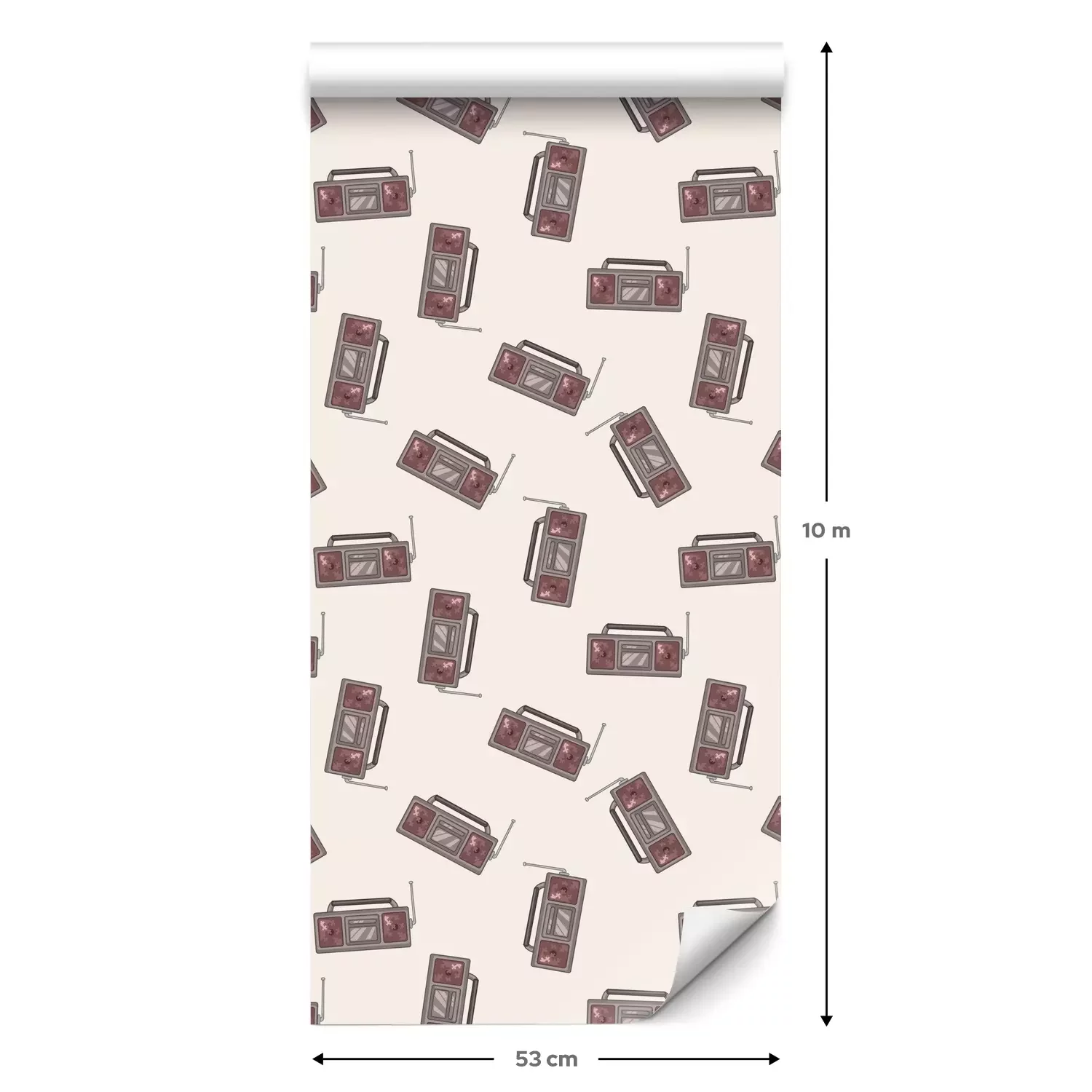 Eine Standard-Tapetenrolle hat die Maße 0,53 m x 10 m und deckt eine Wandfläche von etwa 5 m² ab.