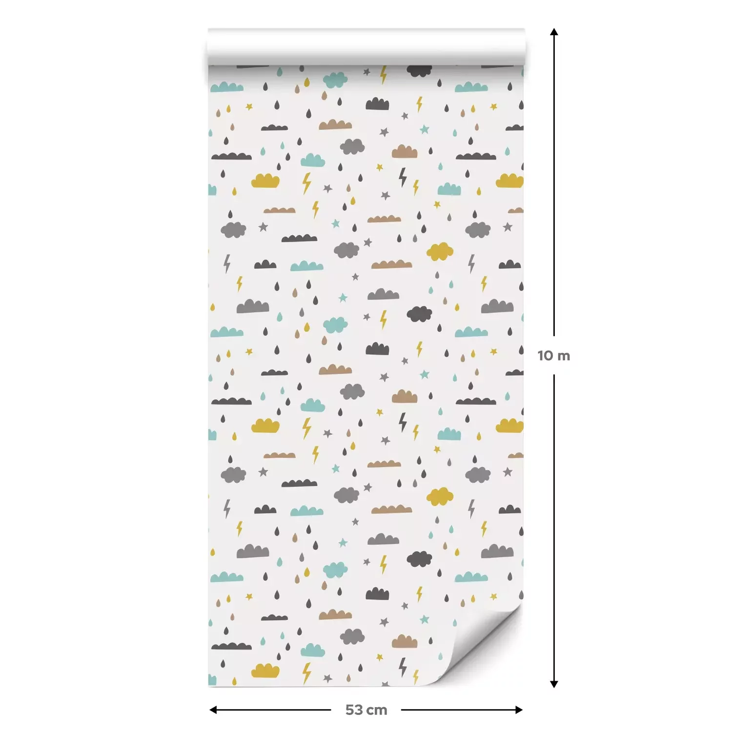 Eine Standard-Tapetenrolle hat die Maße 0,53 m x 10 m und deckt eine Wandfläche von etwa 5 m² ab.