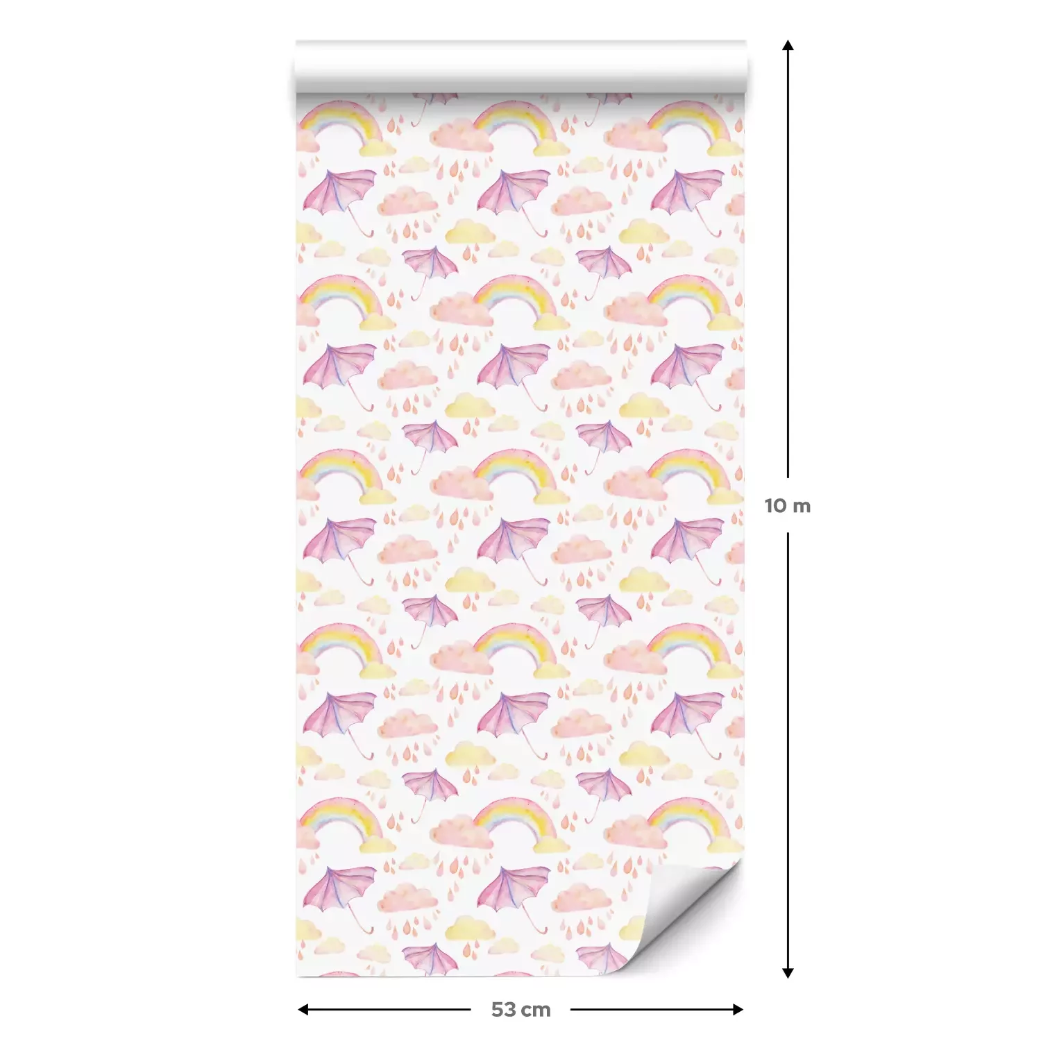 Eine Standard-Tapetenrolle hat die Maße 0,53 m x 10 m und deckt eine Wandfläche von etwa 5 m² ab.