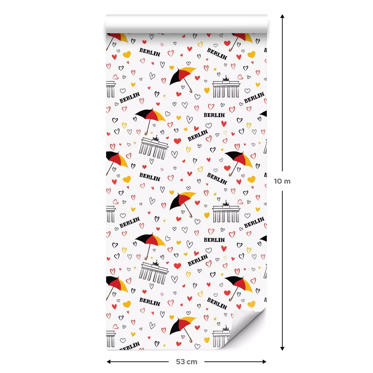 Eine Standard-Tapetenrolle hat die Maße 0,53 m x 10 m und deckt eine Wandfläche von etwa 5 m² ab.