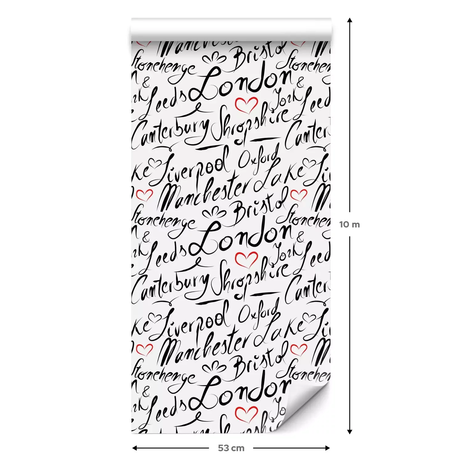 Eine Standard-Tapetenrolle hat die Maße 0,53 m x 10 m und deckt eine Wandfläche von etwa 5 m² ab.