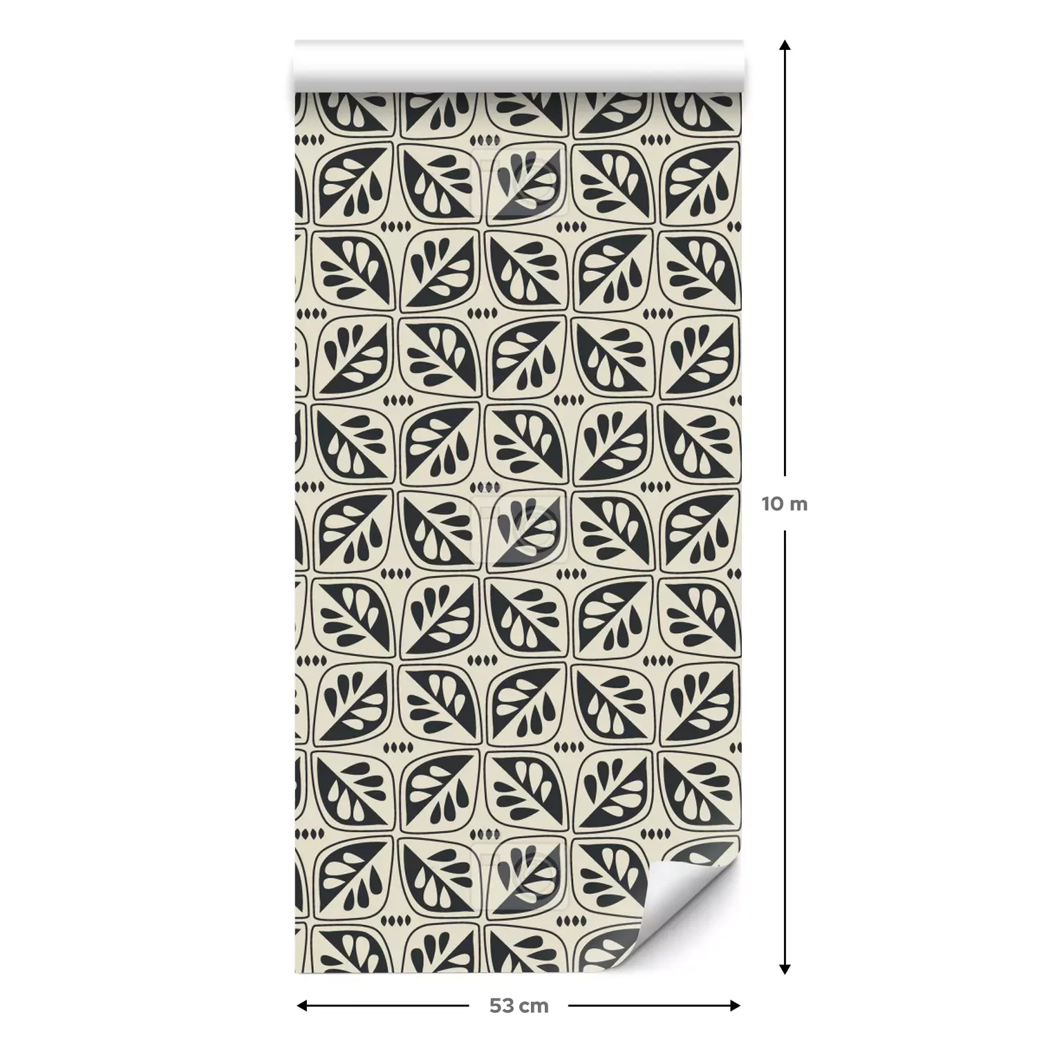 Eine Standard-Tapetenrolle hat die Maße 0,53 m x 10 m und deckt eine Wandfläche von etwa 5 m² ab.