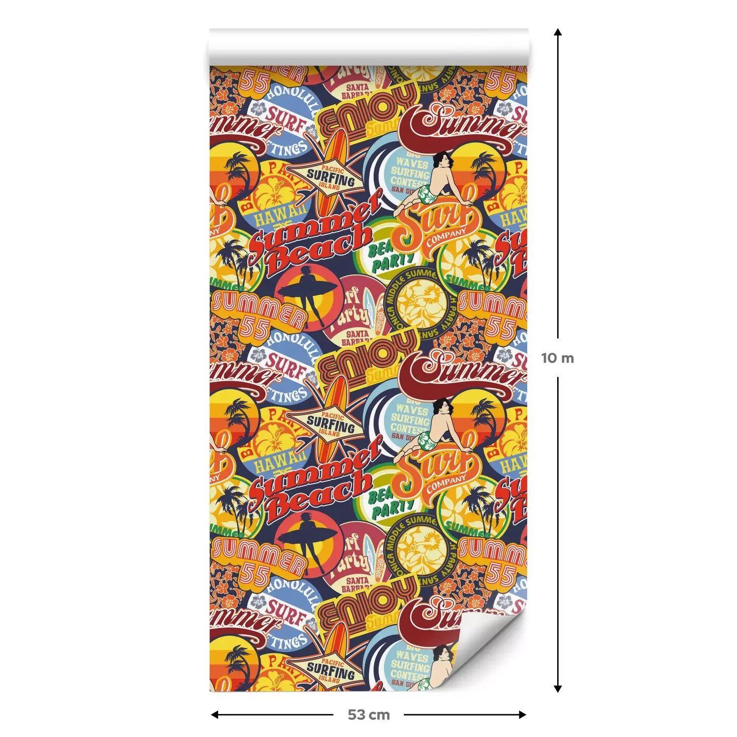 Eine Standard-Tapetenrolle hat die Maße 0,53 m x 10 m und deckt eine Wandfläche von etwa 5 m² ab.