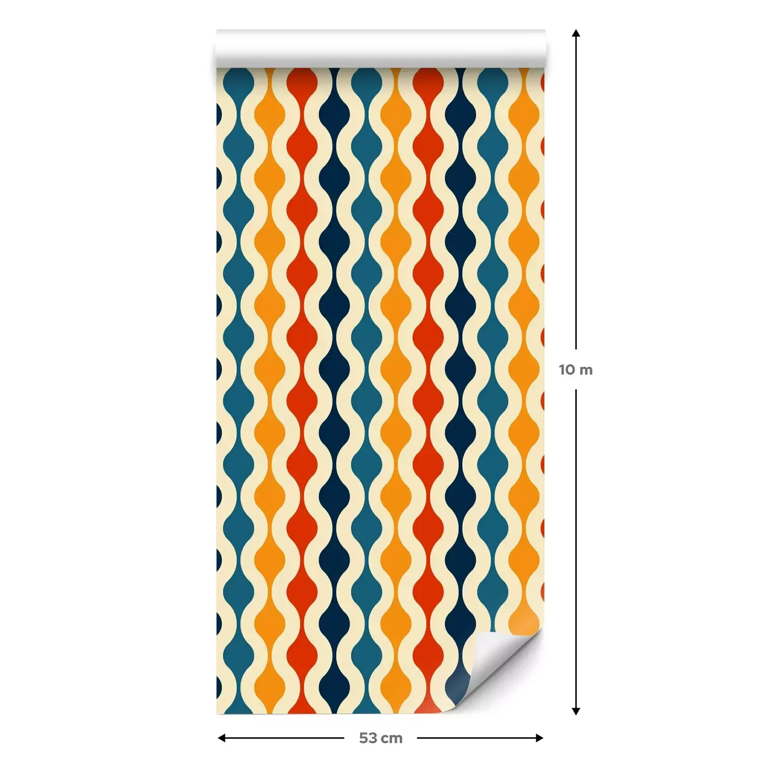 Eine Standard-Tapetenrolle hat die Maße 0,53 m x 10 m und deckt eine Wandfläche von etwa 5 m² ab.