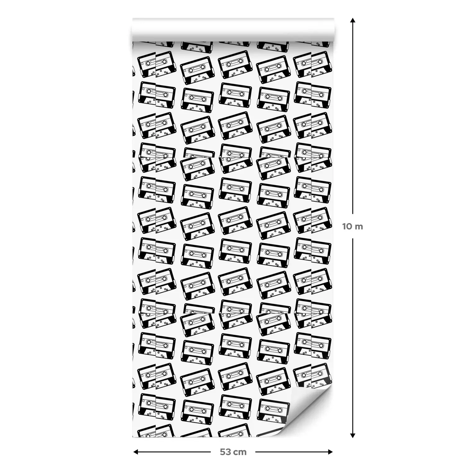 Eine Standard-Tapetenrolle hat die Maße 0,53 m x 10 m und deckt eine Wandfläche von etwa 5 m² ab.