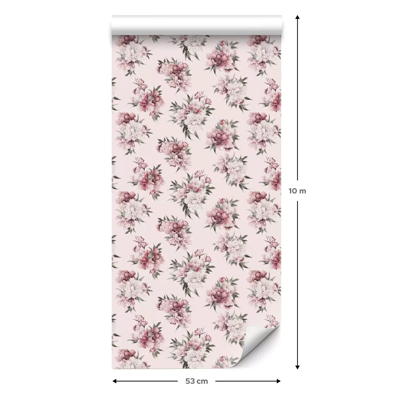 Eine Standard-Tapetenrolle hat die Maße 0,53 m x 10 m und deckt eine Wandfläche von etwa 5 m² ab.