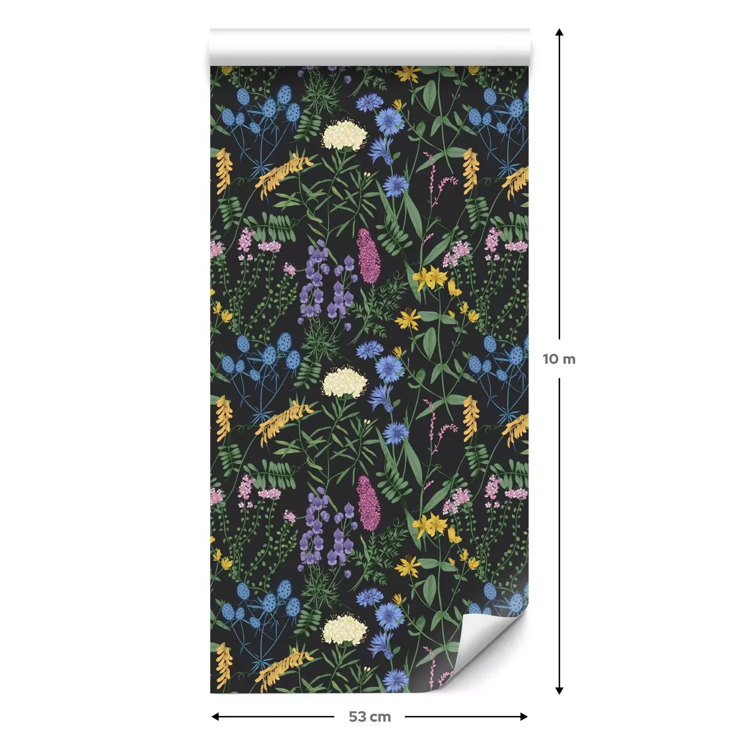 Eine Standard-Tapetenrolle hat die Maße 0,53 m x 10 m und deckt eine Wandfläche von etwa 5 m² ab.