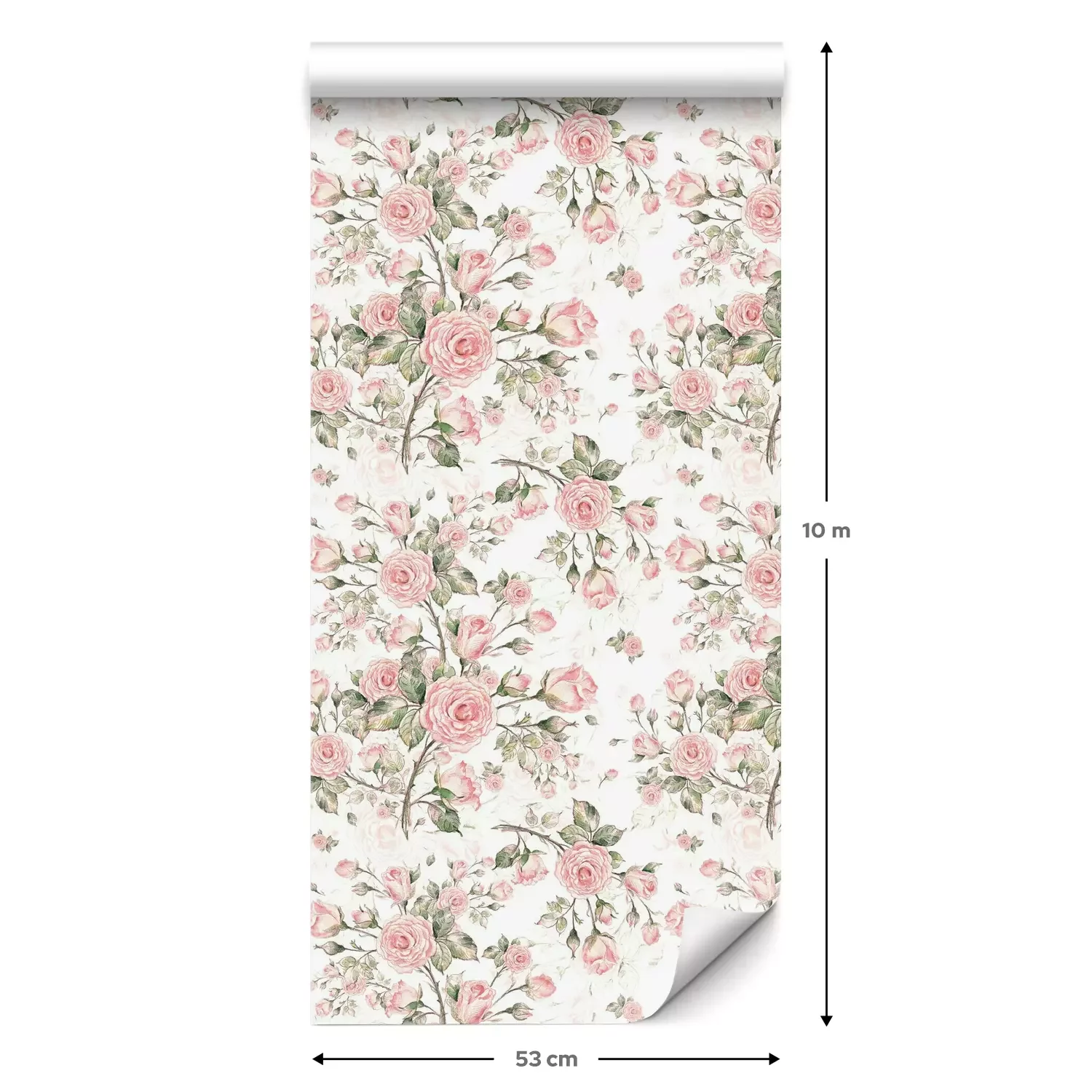 Eine Standard-Tapetenrolle hat die Maße 0,53 m x 10 m und deckt eine Wandfläche von etwa 5 m² ab.