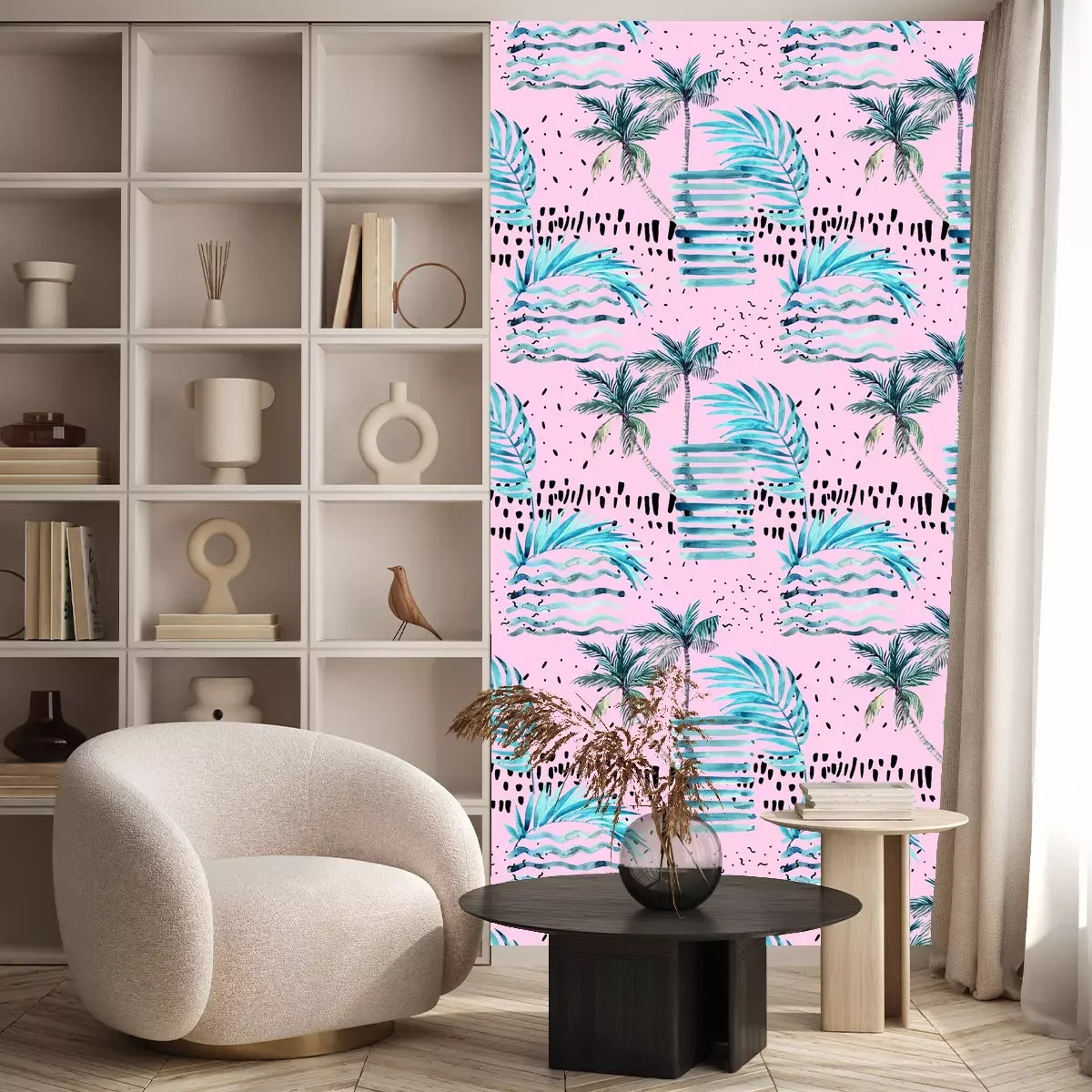 Blaues Motiv mit NaturTapete
