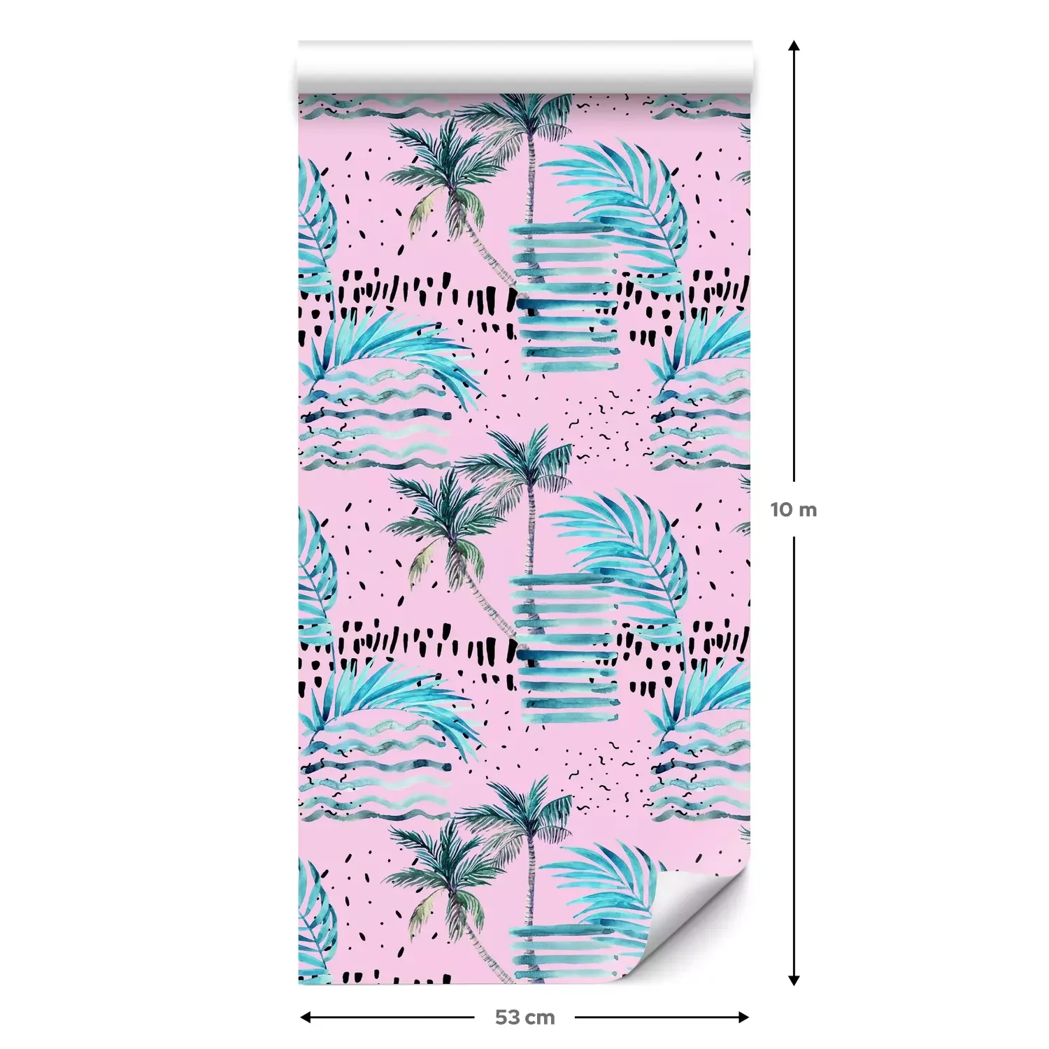 Eine Standard-Tapetenrolle hat die Maße 0,53 m x 10 m und deckt eine Wandfläche von etwa 5 m² ab.