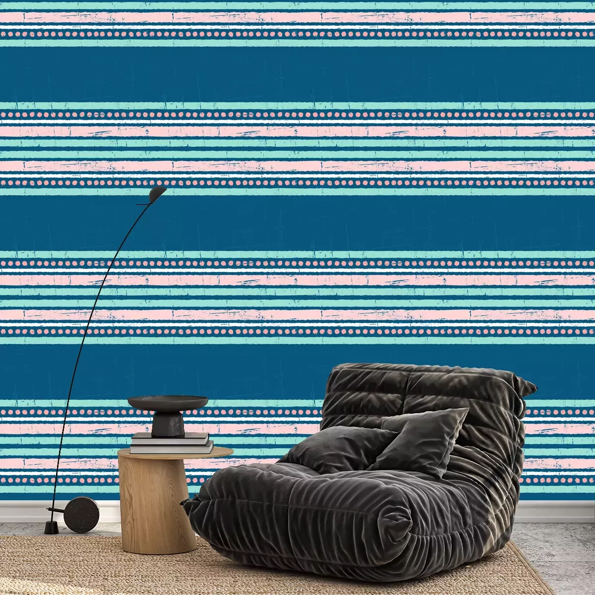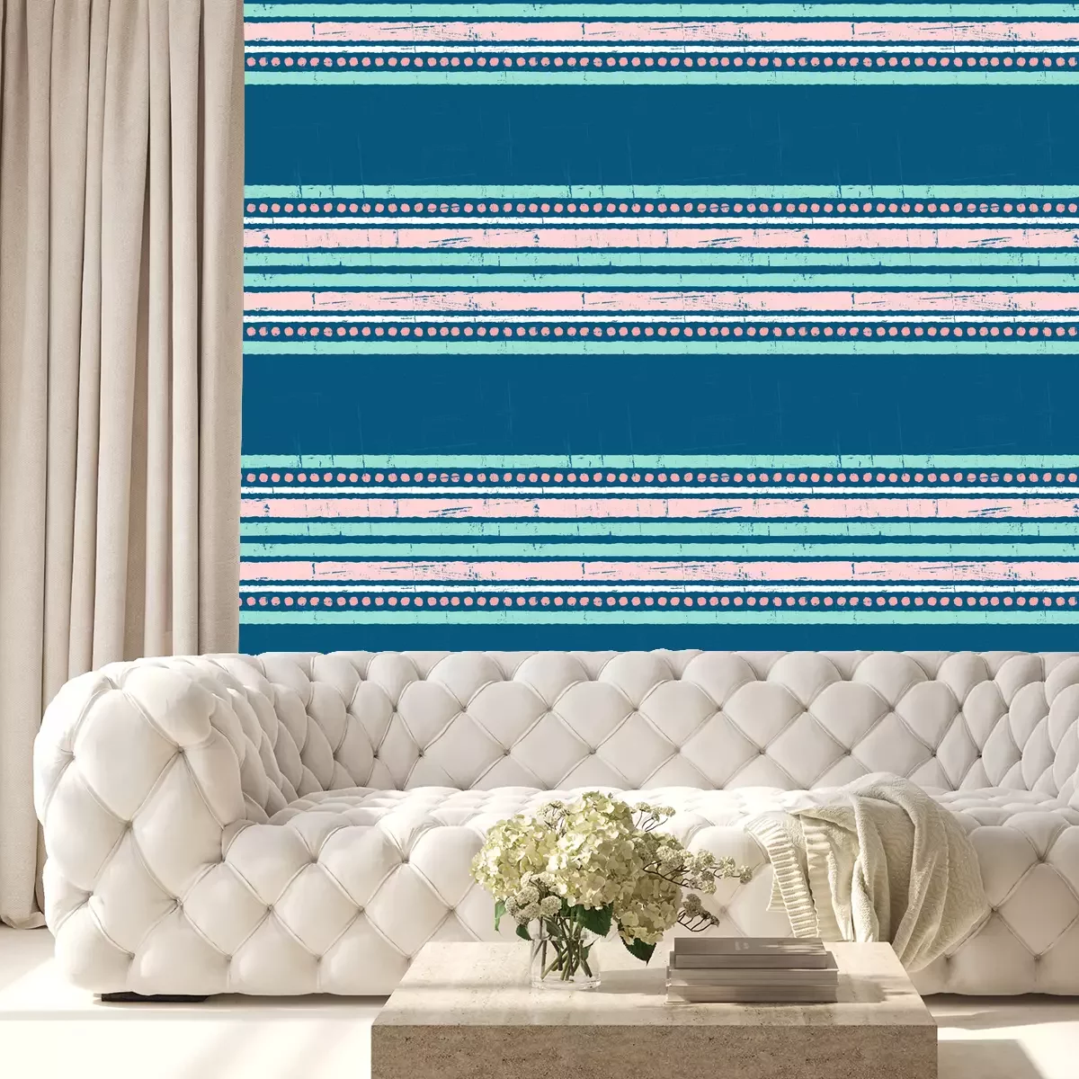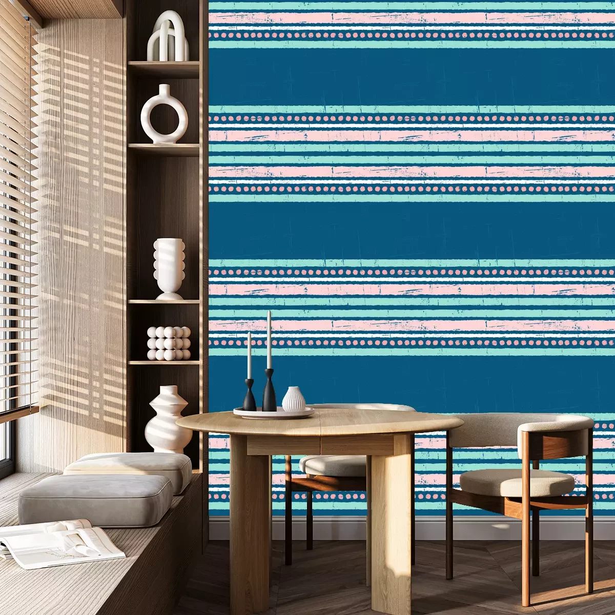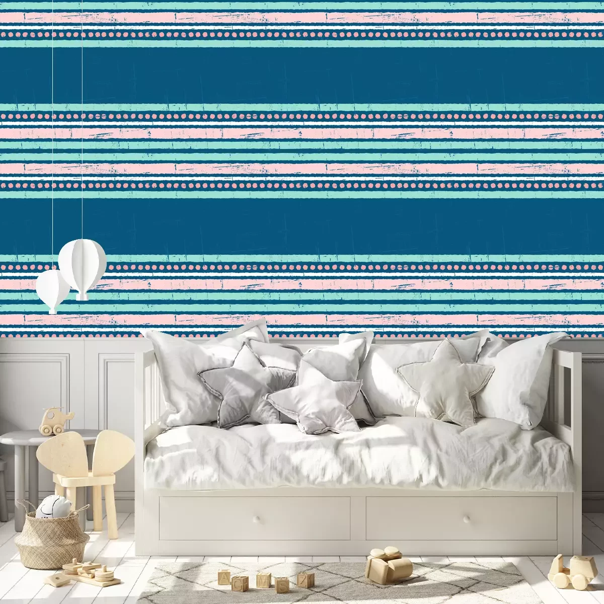Tapete Rosa-blaues Muster mit Streifen und Punkten