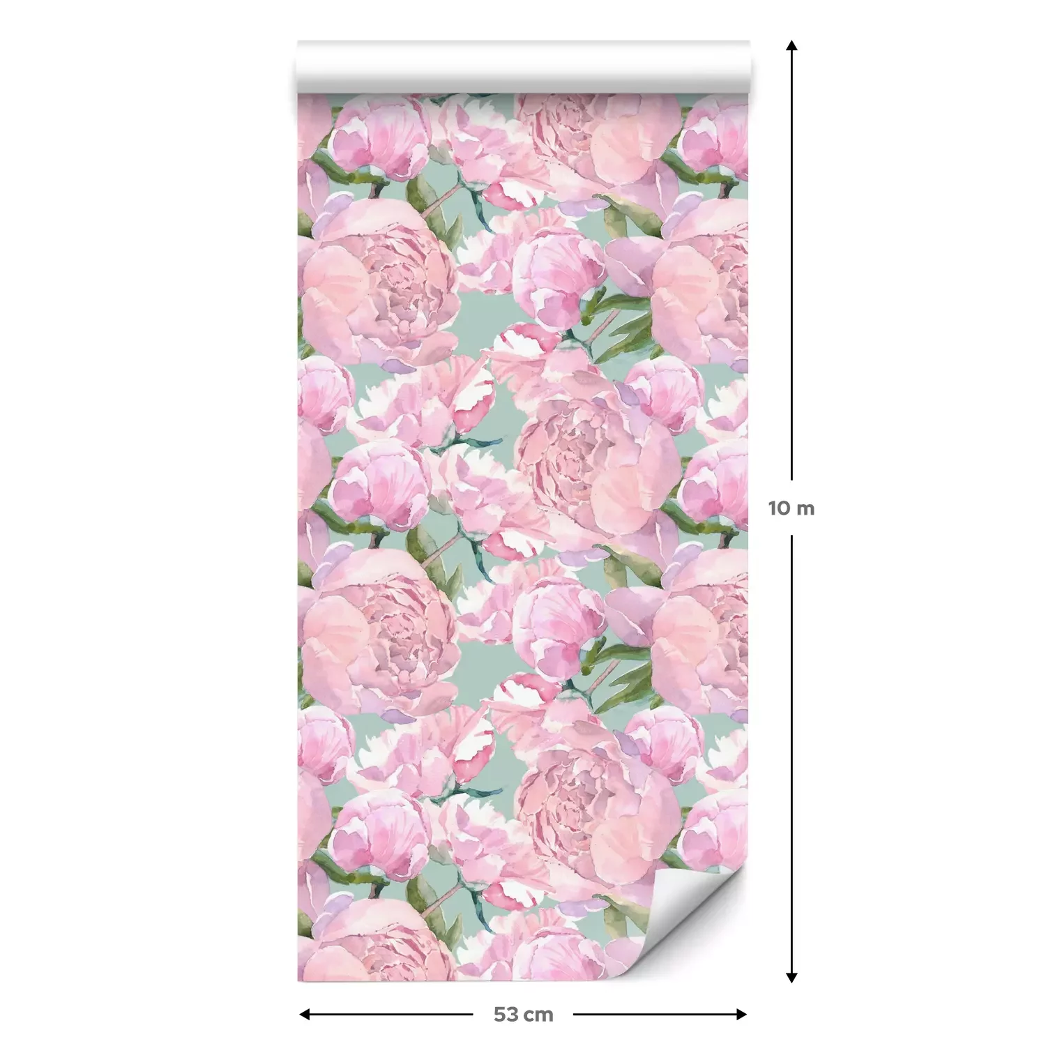 Eine Standard-Tapetenrolle hat die Maße 0,53 m x 10 m und deckt eine Wandfläche von etwa 5 m² ab.